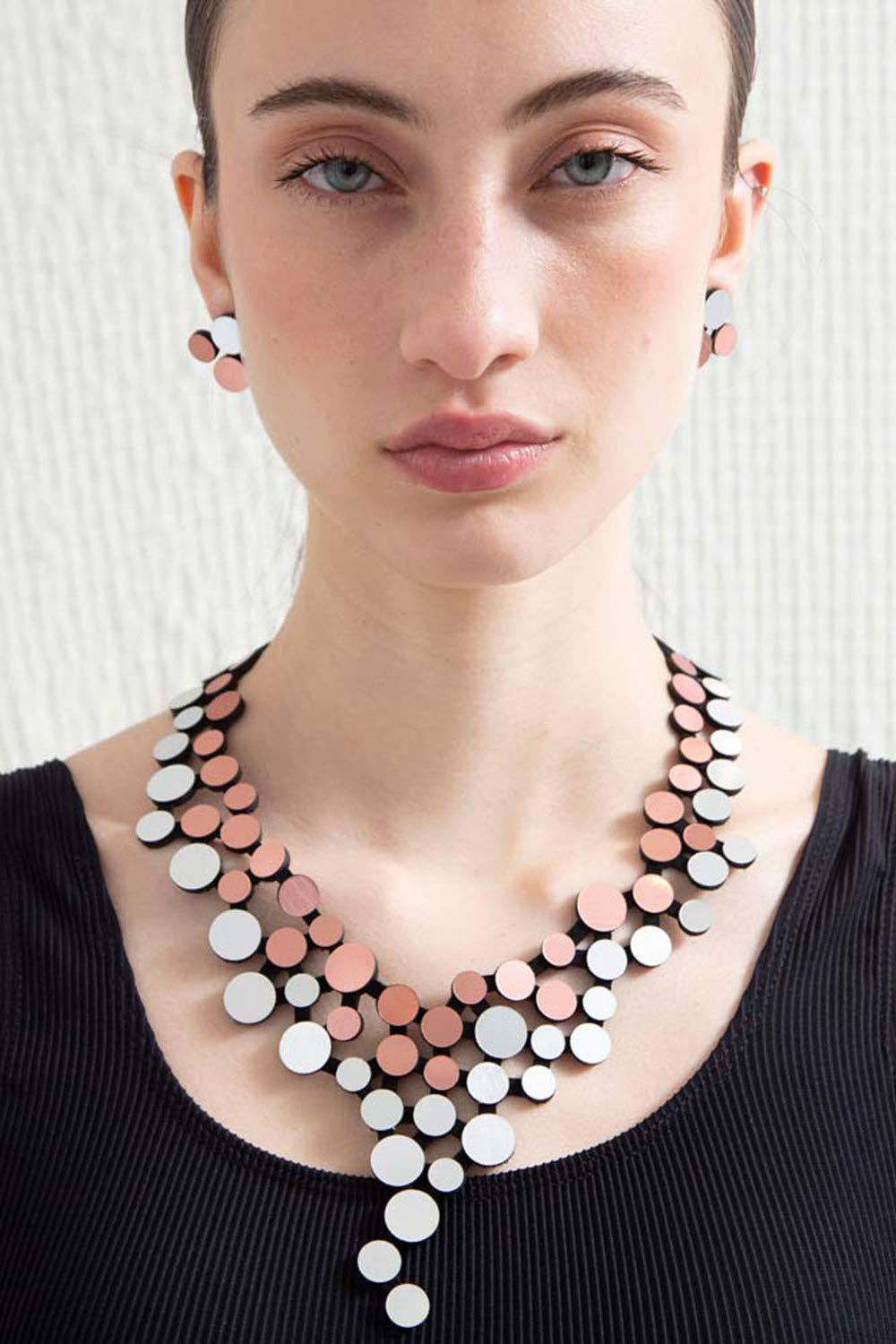 Progettiamo gioielli e accessori contemporanei fatti per durare. Creiamo collane, braccialetti, orecchini e anelli con un tocco contemporaneo. Gabriela e Karina Iskin giocano insieme fin dall'infanzia. Nel 2004, le sorelle di Buenos Aires hanno lanciato la loro prima collezione di creazioni giocose. Il background di design industriale di Gabriela e quello aziendale di Karina hanno reso le sorelle, metà brasiliane e metà argentine, una squadra perfetta. Si ispirano all'architettura, all'arte moderna e contemporanea, ai paesaggi naturali e al senso di meraviglia ed eccitazione che entrambe conservano dall'infanzia. I pezzi unici realizzati con materiali non convenzionali per gioielli, come pelle, camoscio e acrilico, sono progettati pensando alla donna moderna. Lei vuole tutto: semplicità e un'affermazione audace, ispirazione da viaggi lontani e il piacere della comunità e della famiglia, attenzione che cattura lo sguardo e un senso di spazio personale e gusto, il tutto desiderando una moda confortevole, indossabile e leggera che possa essere vestita in modo elegante o casual per qualsiasi occasione. La nostra azienda di produzione si trova a Buenos Aires e realizziamo a mano i nostri gioielli, aderendo ai più alti standard di qualità. Tutti i prodotti Iskin Sisters sono rifiniti a mano. Abbiamo un ufficio e un magazzino a Madrid, in Spagna (da lì spediamo tutti i nostri ordini europei) e nel Vermont, negli Stati Uniti (per spedire ordini negli Stati Uniti e in Canada).