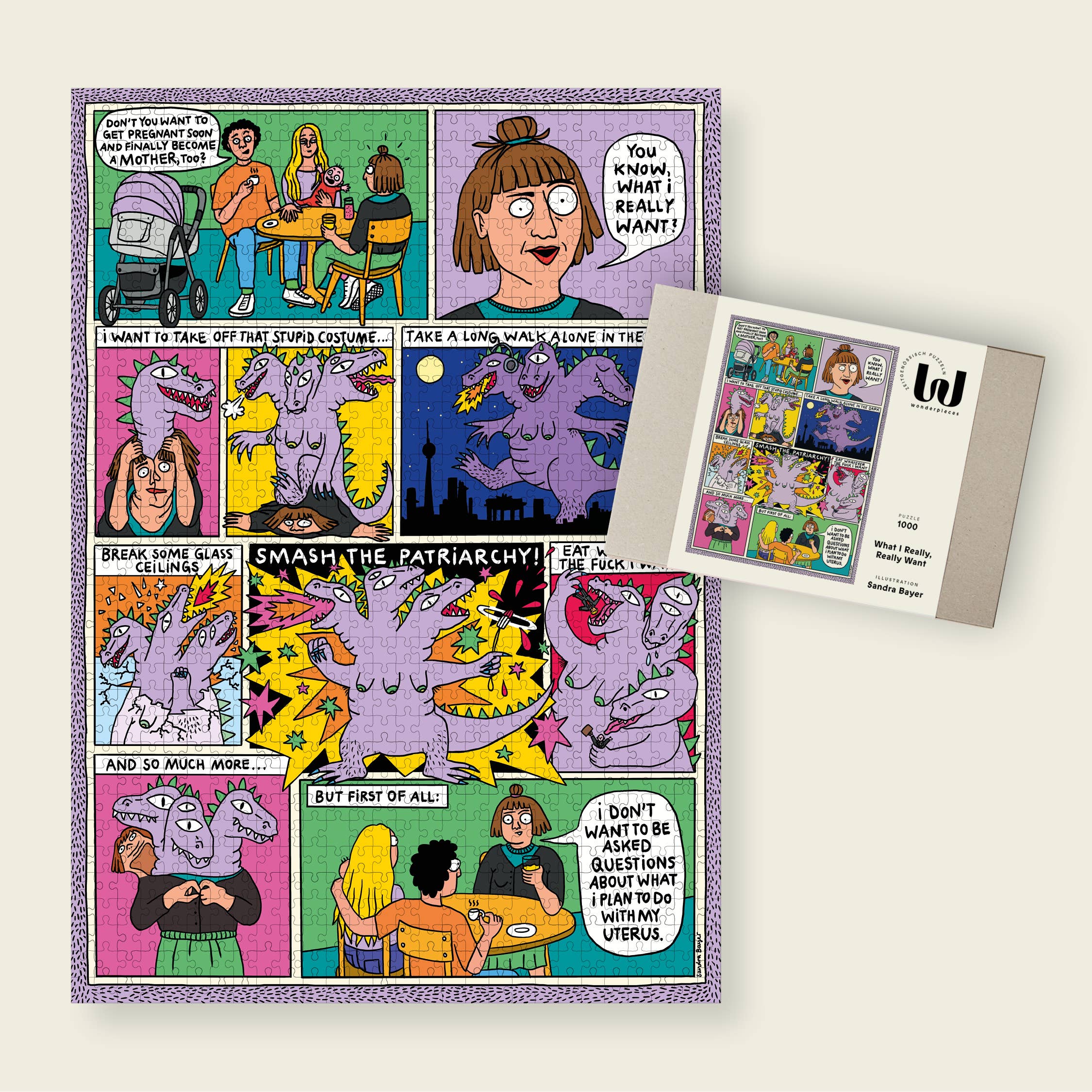Wonderpieces è stato fondato da noi, Yvonn Barth + Marie von dem Berge, come nuova etichetta di puzzle a Berlino. I puzzle contemporanei di Wonderpieces non sono solo belli e cool, ma anche femministi, diversificati e sostenibili. Con Jill Senft, Laura Breiling, Slinga, Ayşe Klinge, Rinah Lang, Haley Tippmann, Bonnie & Buttermilk, Lisa Tegtmeier, Stephanie Wunderlich e Notietzblock, abbiamo illustratori creativi, ambiziosi e rinomati che portano sulla tavola del puzzle motivi attuali con stili inconfondibili e dichiarazioni forti. Tutto è prodotto in modo sostenibile e della massima qualità in Germania. L'imballaggio è realizzato al 100% con carta riciclata, il bellissimo sacchetto per puzzle è in cotone certificato con marchio Fairtrade. È tempo per una nuova generazione di puzzle. È tempo per Wonderpieces.