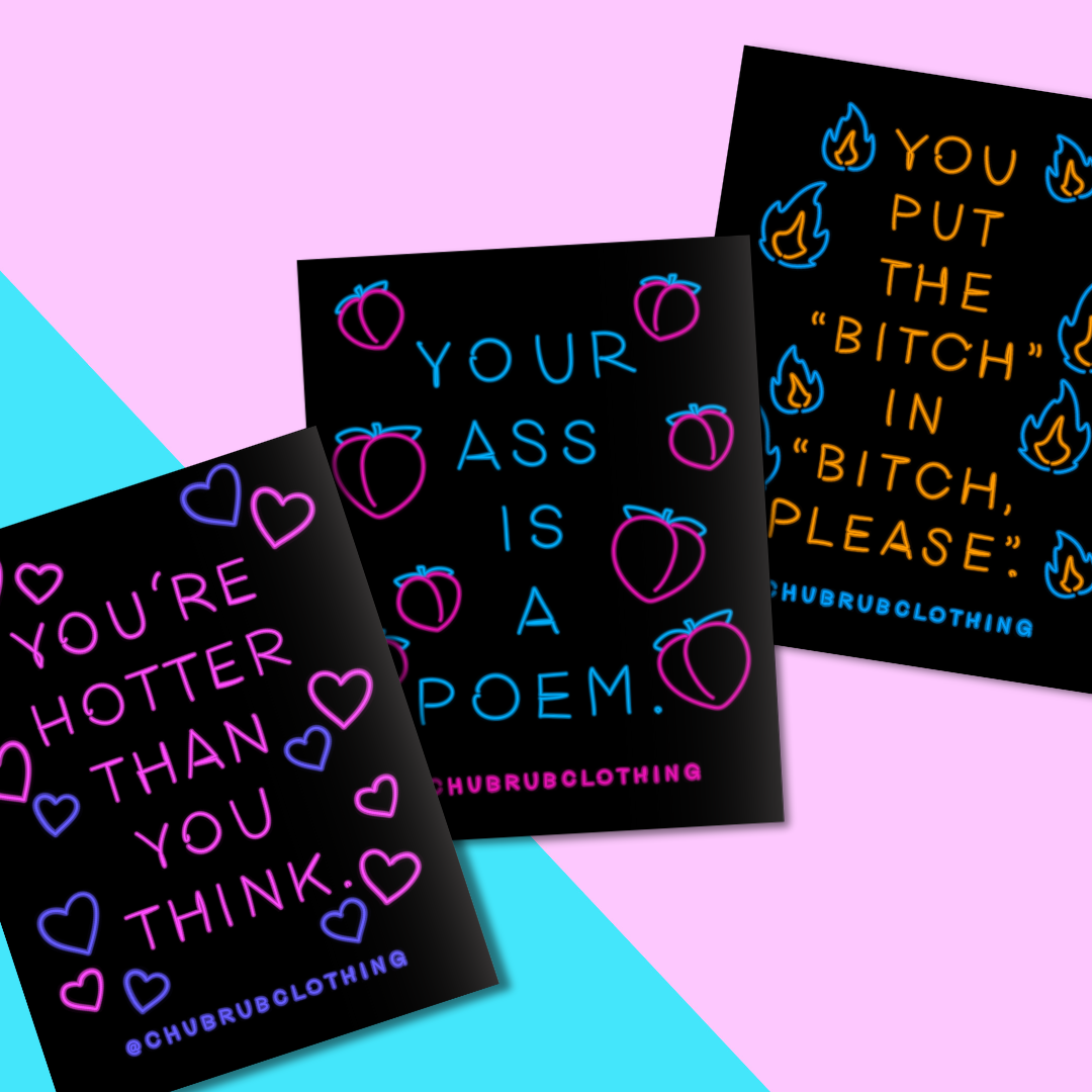 Chub Rub Clothing, lanciato dalla designer Candace Frank all'inizio del 2023, si basa sulla sua eredità di moda audace, positiva per i corpi grassi e di liberazione creativa, espandendosi in magliette, costumi da bagno, adesivi e la amata maglietta Fattie che tutti hanno indossato con orgoglio.