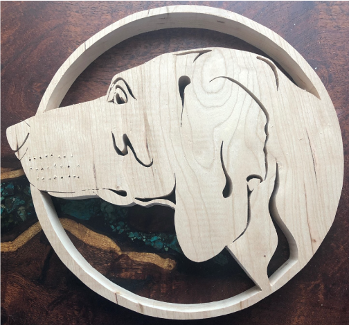 Trentatré anni fa mia moglie mi regalò una sega per il mio compleanno. A quel tempo vivevamo in una piccola casa e il mio laboratorio era di circa 100 piedi quadrati nel seminterrato. Andavo nel seminterrato dopo una giornata stressante di lavoro e facevo cose per circa un'ora. Esponevamo questi pezzi a casa nostra o li regalavamo ad amici o enti di beneficenza. Continuavo a ricevere lo stesso commento: «Dovresti vendere il tuo lavoro». A quel tempo, semplicemente non avevo il tempo di costruire l'inventario. Sono andato in pensione nel 2015 e ora ho tempo. Dal 2016, espongo la mia arte come Rocking-F Woodworks in luoghi del Dallas-Ft. Zona di Worth, Mississippi centrale, penisola di Delmarva e ora Texas meridionale. Le mie opere d'arte provengono da luoghi lontani come il Sudafrica, la Svezia e le Filippine. Le mie croci sono state esposte alla Casa Bianca e nella villa del Governatore. Perché il mio logo Rocking-F? La mia famiglia usa il Rocking-F per marchiare il proprio bestiame da quando posso seguirlo (circa 1660 in America). Nessuno utilizza attualmente il marchio (che posso trovare). Ho deciso di usarlo per marcare i miei pezzi.
