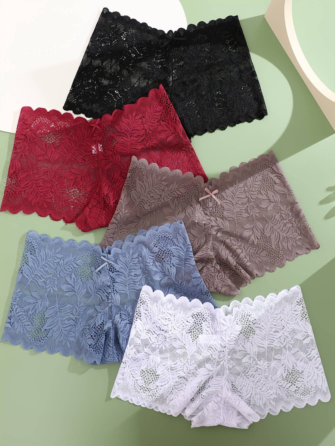 Mutandine da donna a vita media - Bordi in pizzo a contrasto con dettaglio a smerlo e fiocco giocoso, design morbido e confortevole senza cuciture, supporto moderato, colore solido per occasioni casual o speciali, mutandine carine, comfort quotidiano, biancheria intima elegante, moderato
