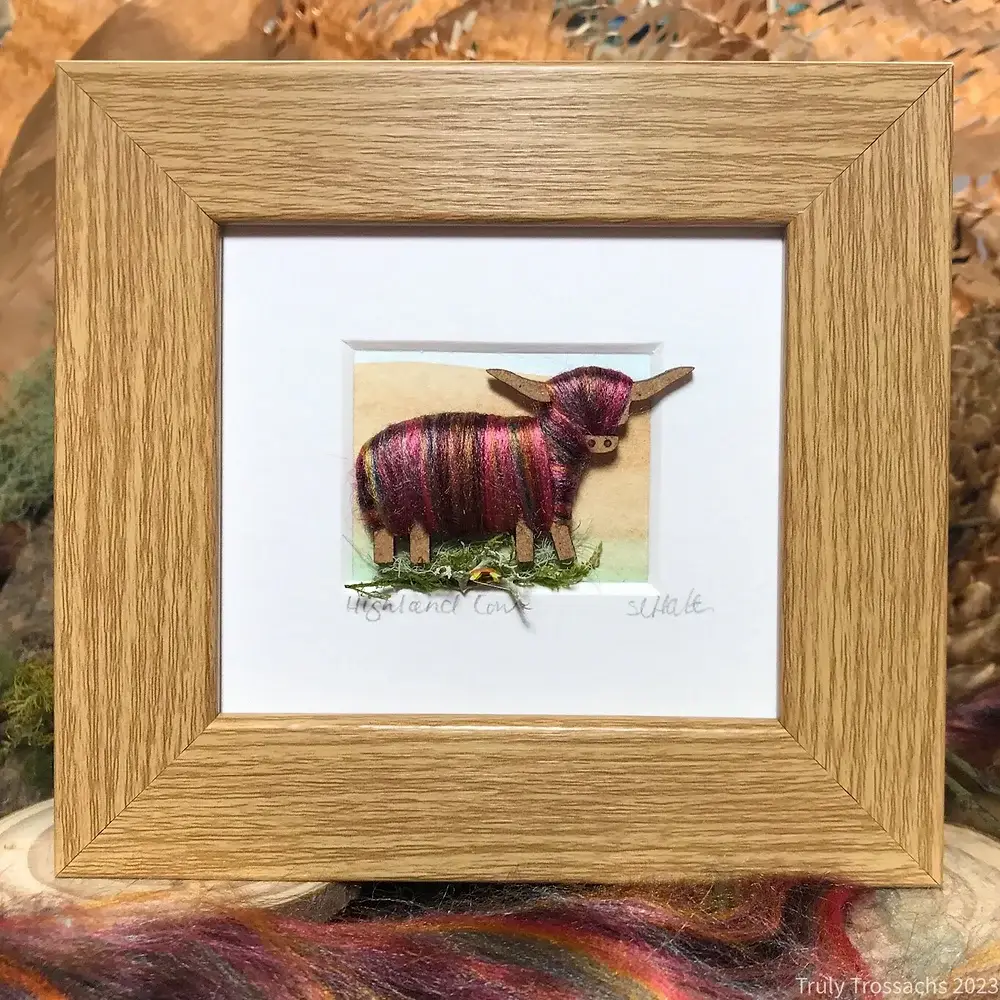 Mi chiamo Sarah e adoro creare immagini dalla natura. La mia gamma comprende biglietti unici, spille, supporti, immagini in scatola e regali realizzati con i miei collage naturali, tutti realizzati su ordinazione. Le mie cornici in legno sono tutte realizzate a mano localmente. Le mie miscele di lana sono tinte a mano e cardate con altre miscele su misura non solo con lana di pecora ma anche alpaca, bambù e seta. L'intera gamma di miscele disponibili è fotografata sul mio sito web. I boschi e le coste della Scozia forniscono una grande quantità di materiali per creare le mie opere individuali. Vivo nella foresta di Great Trossachs circondata da laghi e valli pieni di muschi, licheni, erica e meravigliosi semi e foglie. Le pecore autoctone locali forniscono la lana. Uno dei miei posti preferiti per il beachcombing è l'Isola di Arran, al largo della costa occidentale della Scozia. Le bellissime forme curve del vetro e delle stoviglie raccolte sulla spiaggia rendono perfette le vele in barca per le mie foto. Il mio primo coinvolgimento in un punto vendita è stato «Creative in Callander» nel 2013, il primo negozio di artigianato di una cooperativa di imprese sociali in Scozia, di cui ora sono presidente e artista espositore. Questo è stato seguito da «Made in Striling», un altro punto vendita pluripremiato per artisti dai molti talenti.
