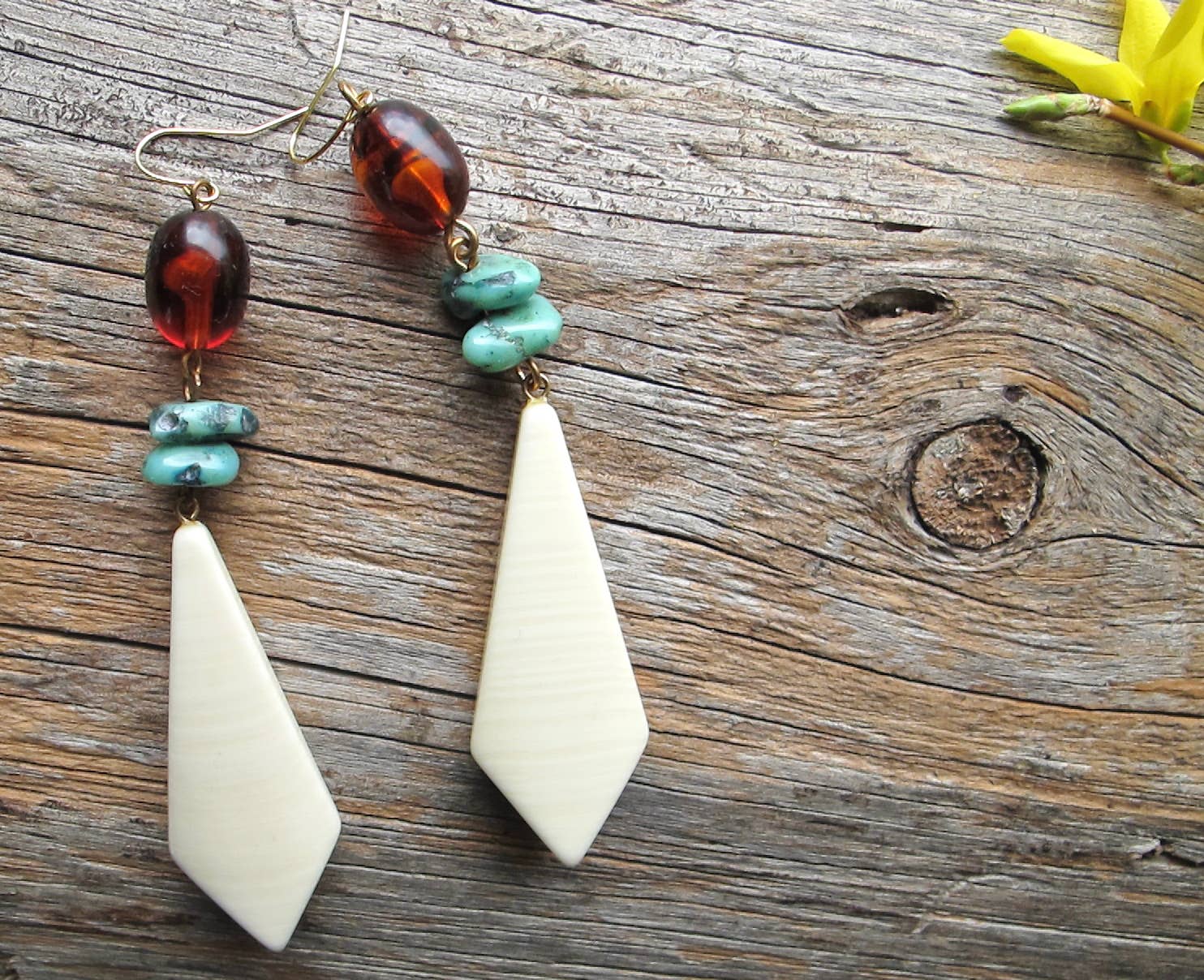Vintage San Valentino e giardinaggio. Bambole di carta e negozio di articoli usati caccia. Storia culturale americana e la bellezza invecchiata del passato. Tutto questo si unisce nella creazione dei miei gioielli fatti a mano. Ogni pezzo è stato progettato e realizzato a mano da me, con un occhio verso il colore, la consistenza e la forma, realizzato con autentici componenti vintage morti degli anni '60, '70 e '80 che provengo da magazzini con persiane in tutto il New England. Tutto amorevolmente fatto dal mio studio di casa a Boston, MA con l'aiuto di studio cucciolo Nico.