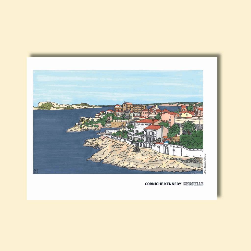 JOG | Casa editrice è nata da un amore profondo per l'illustrazione, la carta e le piccole gioie quotidiane. Dietro ogni creazione si nasconde il desiderio di rendere il Bello accessibile a tutti, senza pretese, ma con il cuore. Qui, nessuna produzione industriale: ogni poster, ogni cartolina è stampata localmente a Marsiglia, su carta riciclata, in edizione limitata. Cosa ci sta più a cuore? Mettere in luce il lavoro di artisti talentuosi con universi vari e offrire a ciascuno la possibilità di portare a casa un frammento di poesia, di mare, di sole o di tenerezza. Ogni poster proviene da un'opera originale che è stata realizzata a mano e senza strumenti digitali dalle mani degli artisti. Da JOG, celebriamo il Mediterraneo, i suoi paesaggi, i suoi mercati, le sue calette, le sue città vibranti... ma anche le emozioni quotidiane, i silenzi che risuonano, le parole dolci battute a macchina. Ogni collezione racconta una storia. E tutte condividono la stessa ambizione: portare nelle case un po' d'arte, emozione e autenticità. JOG è una casa che ama i dettagli, gli artisti, i luoghi e le persone. Una casa che avanza lentamente ma con convinzione, pensando sempre a coloro che trovano bellezza nelle cose semplici.