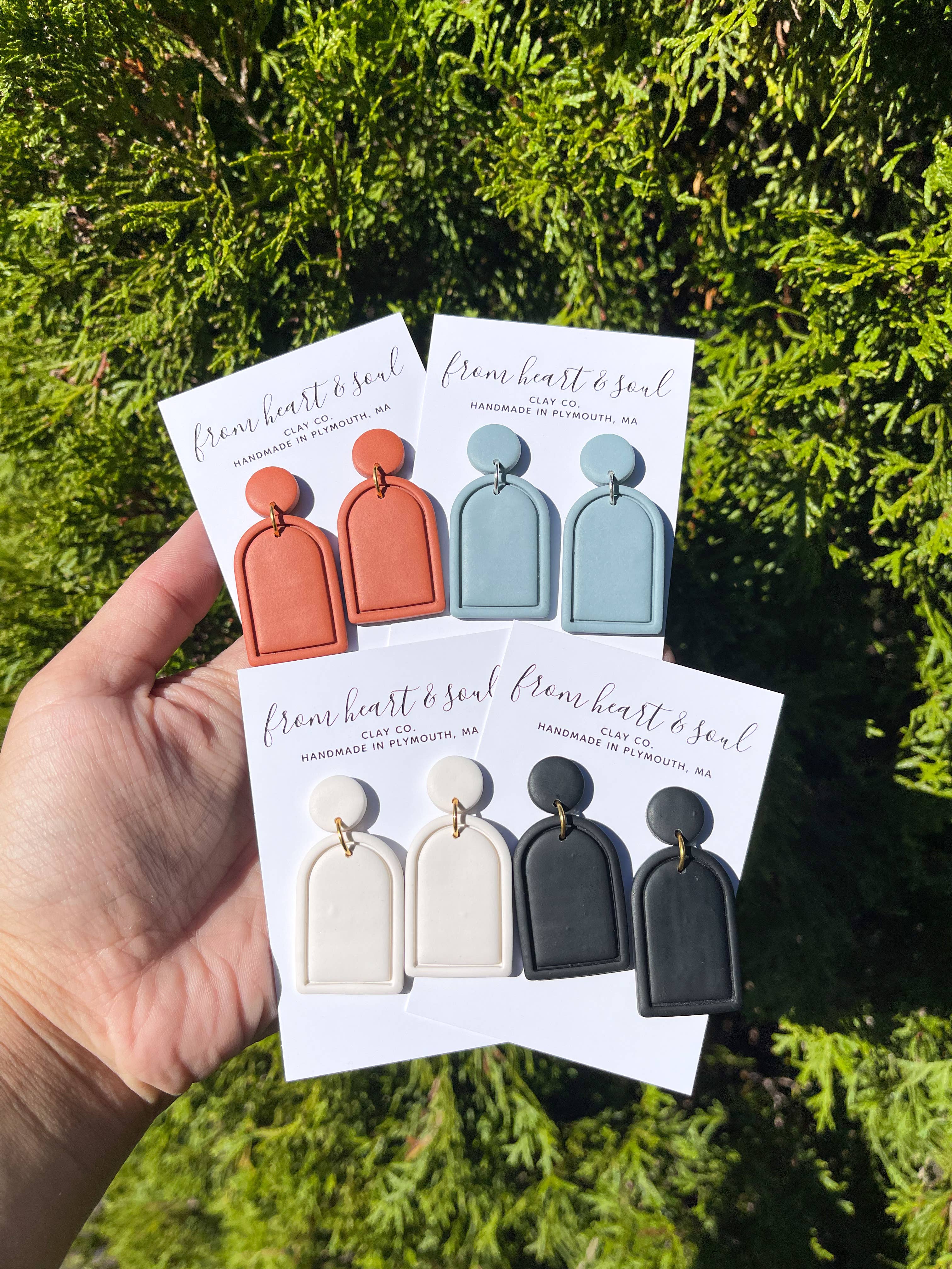 Benvenuto in From Heart & Soul Clay Co. Mi chiamo Cassie, grazie per aver dato un'occhiata alla piccola impresa di proprietà della mia donna! Sono così felice che tu sia qui. Sono nata e cresciuta a Plymouth, MA. Sono un'insegnante di scuola materna, una volta studiavo arte. Inserisci orecchini in argilla. Ho iniziato a creare orecchini perché amo i gioielli e ADORO gli orecchini che non passano inosservato. Odio quando mi appesantiscono le orecchie. Ho scoperto degli orecchini in argilla e non sono mai tornato indietro, anzi, ho iniziato a realizzarli da solo. Le mie collezioni prendono il nome e si ispirano alle donne. Spero che trovi qualcosa che ti faccia sentire favoloso!