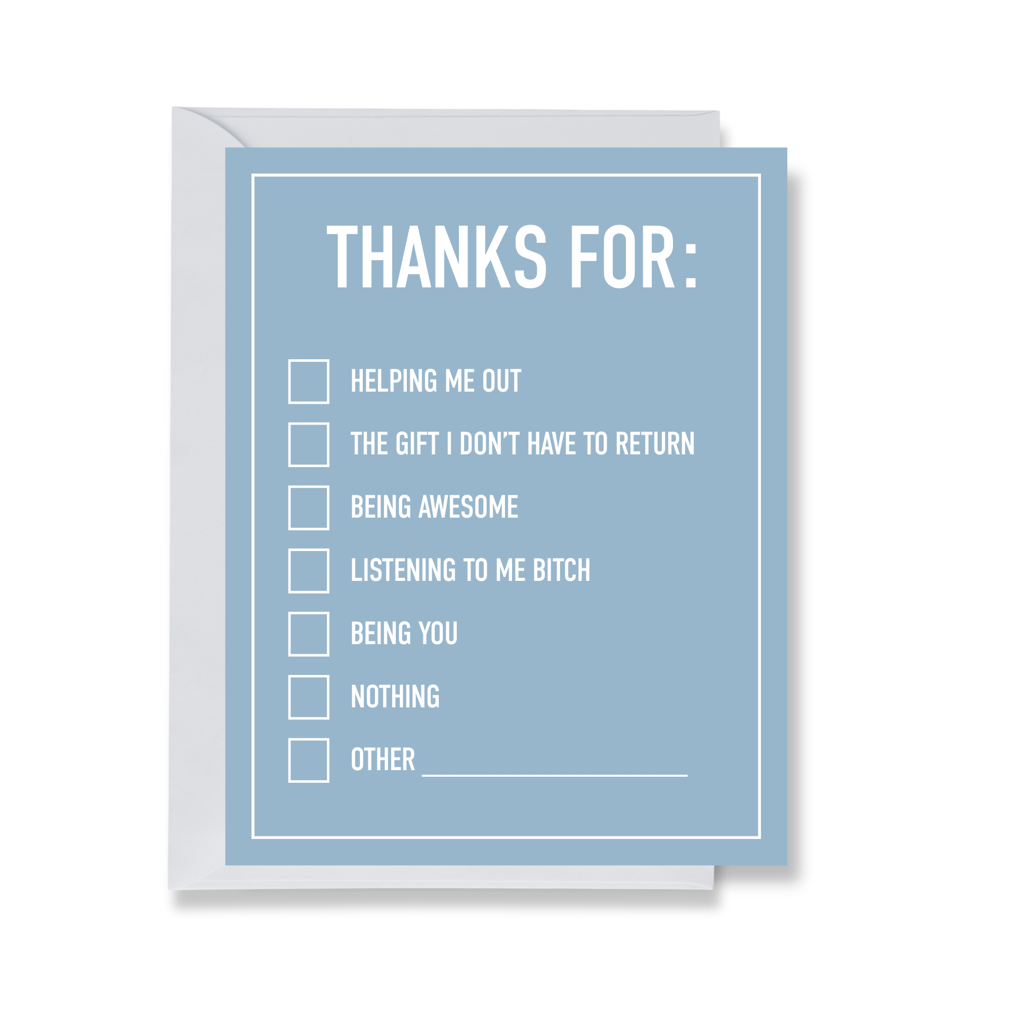 Non c'è niente di meglio nella vita che far ridere qualcuno, almeno questo è ciò in cui crediamo. Le nostre carte sono pensate per essere divertenti, umoristiche, satiriche, appropriate e inappropriate. Regala una carta a qualcuno e dimostra che ci tieni, o che non ti importa. Qualunque cosa ti faccia stare bene. Divertente, spiritoso, esilarante, senza fronzoli. I nostri design riflettono la personalità del nostro proprietario Ben e la natura eccentrica delle persone nel Pacifico nord-occidentale. La vita è troppo breve per essere seri. Divertiamoci un po'. Progettiamo tutto internamente, e stampiamo, pieghiamo e spediamo dal nostro negozio nel bellissimo Pacifico nord-occidentale. Niente è esternalizzato!