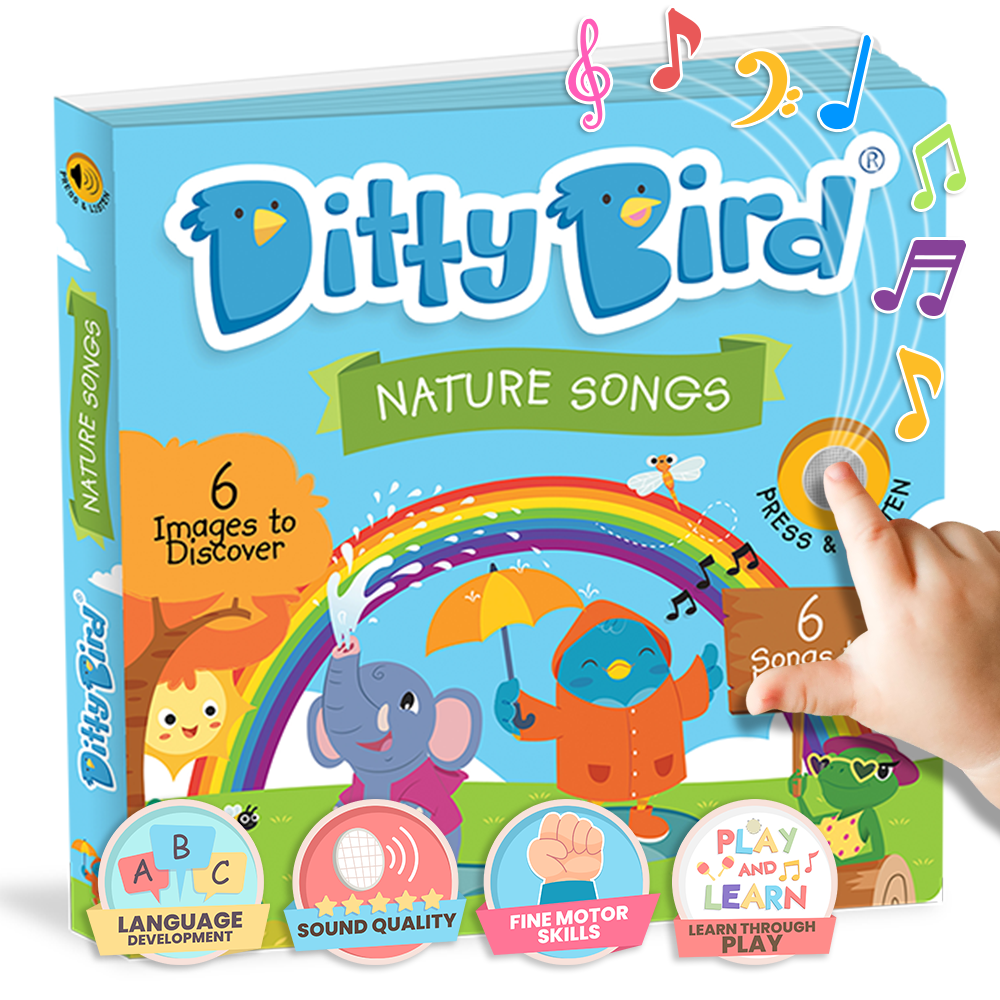 I libri da tavolo musicali Ditty Bird sono lo strumento perfetto per l'apprendimento giocoso attraverso la musica e i suoni. Come veri credenti del Playful Learning, abbiamo creato questa serie di libri musicali divertenti e interattivi per imparare l'inglese in tenera età. Recitare e cantare filastrocche è un ottimo modo per incoraggiare l'apprendimento di una nuova lingua nei tuoi figli. Grazie ai delicati punti di contatto tattili per mignoli curiosi, neonati e bambini piccoli attivano le canzoni cantate da bambini madrelingua inglese. Insieme a illustrazioni vivaci e contenuti accattivanti, la nostra serie Ditty Bird è un modo fantastico per i bambini di imparare le prime parole assimilando gradualmente la fonetica dell'inglese.