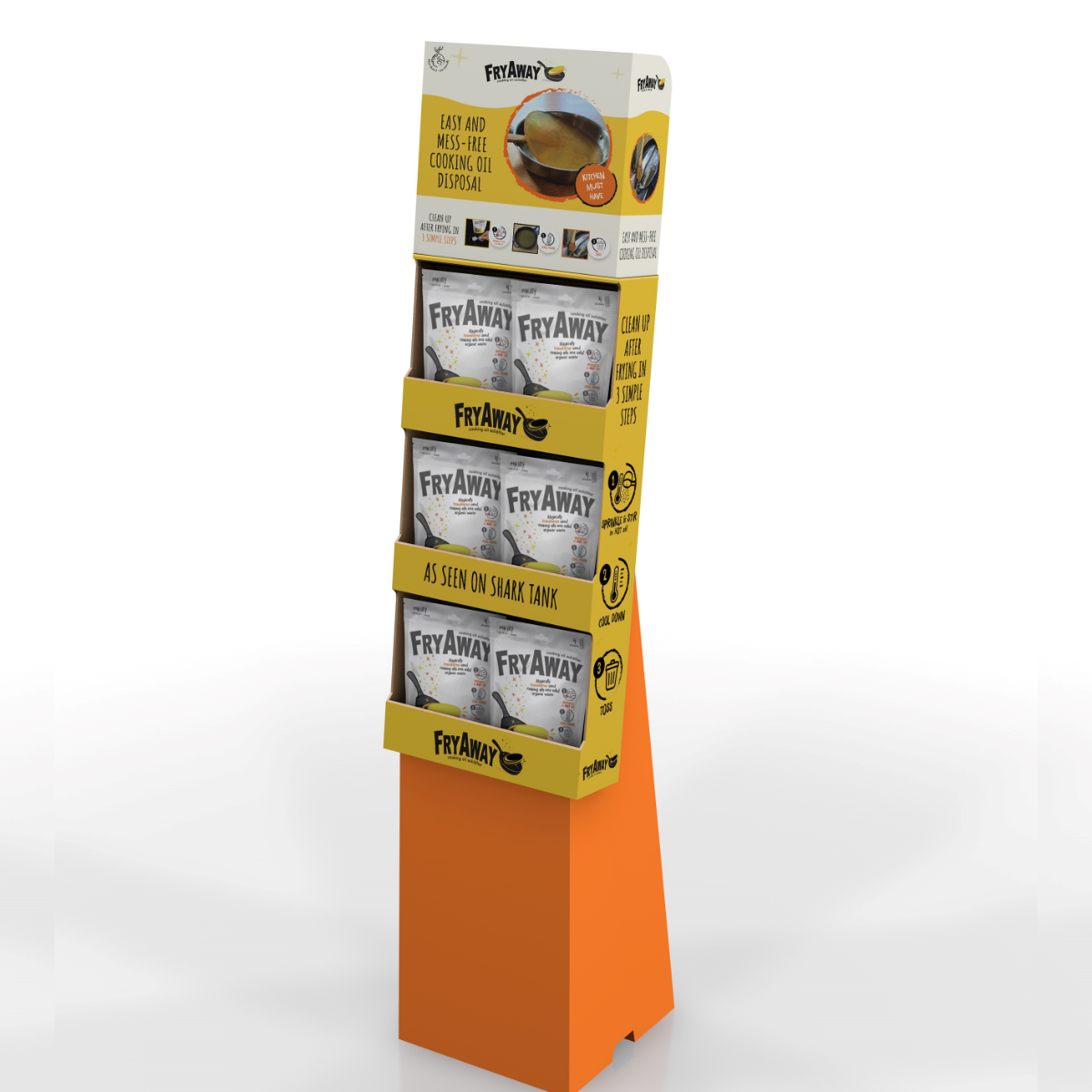 La frittura può essere disordinata. Lo smaltimento dell'olio da cucina usato spesso comporta salviette di carta, sacchetti di plastica, barattoli o il versamento nello scarico. Accidenti! Ecco perché FryAway è la mia migliore creazione finora. È una polvere non tossica a base vegetale che trasforma l'olio da cucina liquido in rifiuti organici solidi, semplificandone lo smaltimento. Con FryAway, puoi sempre goderti la frittura senza sensi di colpa. Unisciti a noi per contribuire a una cultura della frittura rispettosa del pianeta! Abbiamo un tasso di vendita del 100% e una perfetta valutazione a cinque stelle