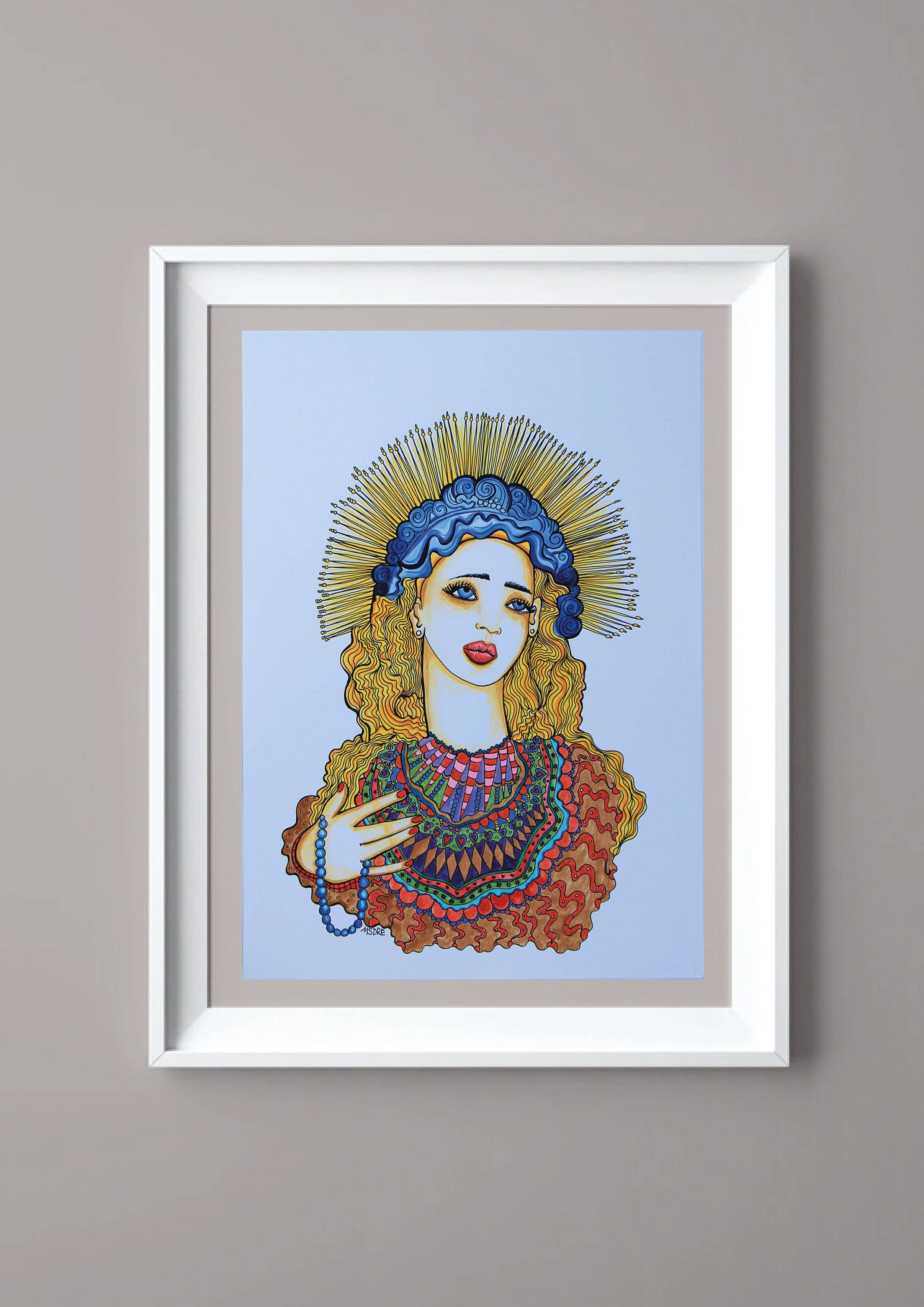 MsDre è un'artista e illustratrice di Brighton. Il suo lavoro riflette i suoi grandi amori per il passato, e si ispira ai miti greci, agli anni '20, all'architettura, al design di metà secolo e al kitsch, alle ragazze pin-up e a tutti i tipi di meraviglie vintage. Proveniente da un background culturale diversificato, con eredità giamaicana, indiana, africana e inglese, include naturalmente queste influenze visive nelle sue opere, che si tratti dei colibrì del villaggio natale in Giamaica, o dei ragazzi di graffiti con cui usciva da adolescente nel nord di Londra. I suoi originali utilizzano un mix di supporti diversi: spesso utilizzano stencil e stampa come punto di partenza, aumentati con penna e inchiostro, colori acrilici e pennarelli, collage e sferzate di vernice spray. Trasforma le sue illustrazioni originali in arte digitale per creare una più ampia collezione di stampe accessibili in edizione aperta.