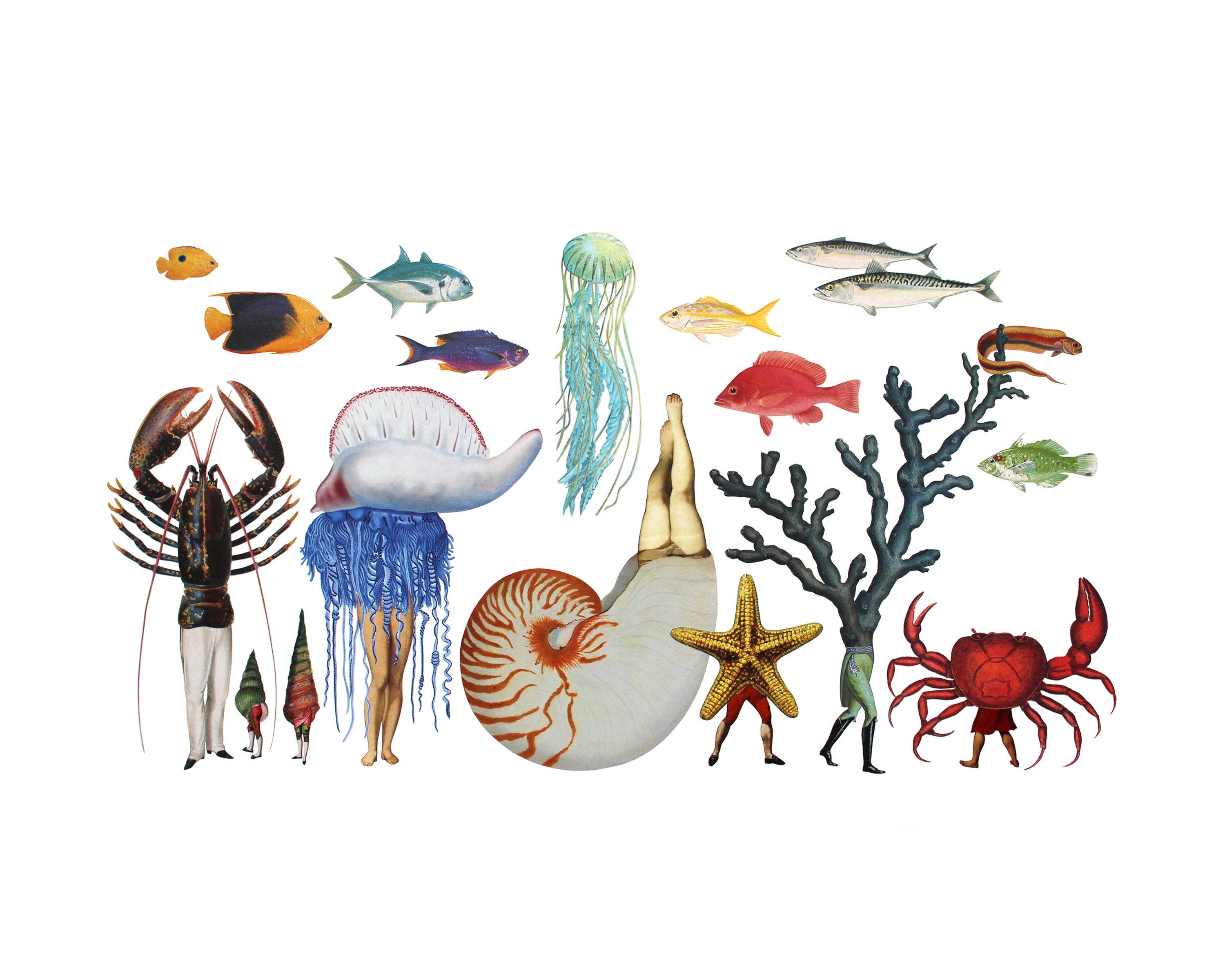 Nature Morph offre una visione fantastica del mondo naturale. Le creature marine vagano su gambe umane, i funghi fanno germogliare teste di animali e le corna di cervo diventano fiori. L'artista Amy Ross crea queste strane e meravigliose creature ibride nel suo studio utilizzando i più elementari strumenti per il collage: mani, carta, forbici, colla. Tramite Nature Morph, Amy realizza stampe giclée delle sue immagini in collage.