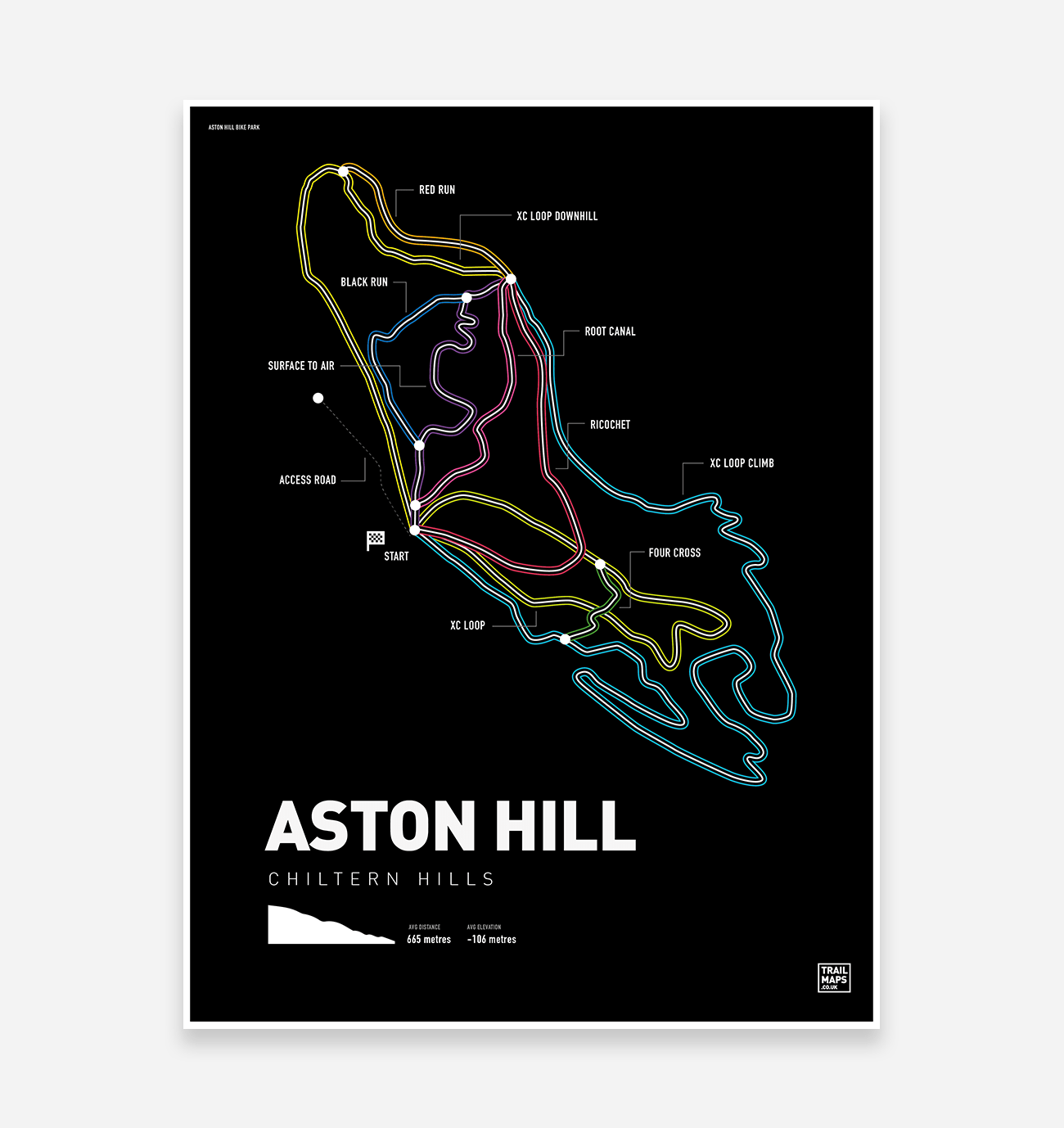 La storia di TrailMaps Con oltre 200 design nella collezione TrailMaps, stampe di qualità adornano le case degli appassionati di mountain bike e delle attività all'aperto in tutto il mondo. Il concept è nato nel 2009 come progetto universitario creato dal fondatore e graphic designer Aaron Tolley. Dopo essersi laureato per intraprendere una carriera in graphic design, sarebbero passati alcuni anni prima che Aaron scoprisse il suo design originale TrailMap, dando vita a un'idea che sarebbe fiorita nel marchio TrailMaps nel 2017. Con sede nello Staffordshire, vicino ai percorsi per mountain bike di Cannock Chase, Aaron e sua moglie Helen gestiscono TrailMaps come un impero a conduzione familiare. Con una solida esperienza nel ciclismo su strada e in mountain bike, questa coppia appassionata di attività all'aria aperta gestisce efficacemente l'attività con due bambini al seguito. Con il successo di un marchio in rapida crescita, Aaron ed Helen hanno fatto il salto per lasciare le rispettive carriere e investire a tempo pieno in TrailMaps nel 2020.