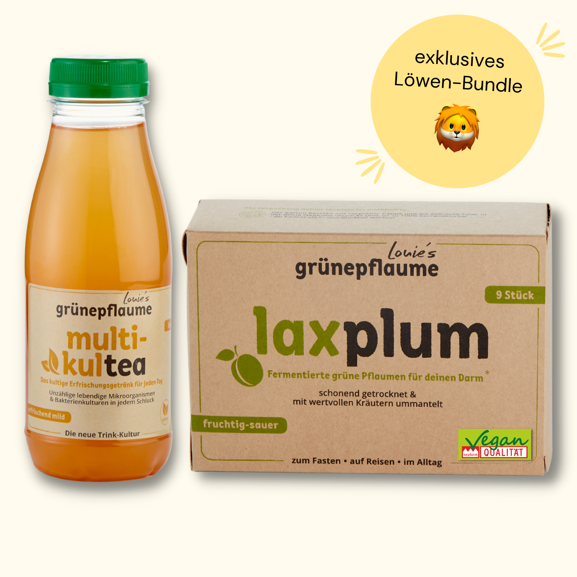Louie's Grünepflaume è un'azienda a conduzione familiare di Amburgo, dove tutto ruota attorno alla salute dell'intestino. Fare spuntini sani per l'intestino non è mai stato così facile! I prodotti della famiglia delle prugne sono pieni di vita: pieni di microrganismi viventi e colture batteriche. Come funziona? Durante la fermentazione dei prodotti, i microrganismi presenti si moltiplicano. Il tuo microbioma ne sarà felice, perché più è diversificata la tua flora intestinale, meglio è! Fai uno spuntino con il colorato assortimento di prugne verdi di Louie: il laxplum è una prugna verde fermentata. Non solo ha un sapore delizioso, ma è anche un modo più rilassato di prugna. Multi-Kultea fornisce al tuo intestino diversi ceppi di batteri, i kimchips sono lo spuntino prebiotico ideale per il tuo microbioma e le briciole di kimchi aggiungono un pizzico di vivacità a qualsiasi piatto. Per il tuo buon istinto!