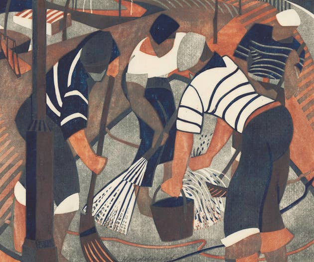 Ciao dalla Bookroom Art Press, editori di stampe artistiche in edizione limitata. Cosa c'è in un nome? La Bookroom Art Press è stata fondata nel seminterrato della nostra libreria a Brighton, sulla costa meridionale dell'Inghilterra. Abbiamo chiamato questo seminterrato «The Bookroom» perché lo abbiamo usato per conservare le nostre scorte di libri in eccesso. «The Press», come viene chiamata, è ora ospitata in un edificio Regency appena sopra la spiaggia di ciottoli di Brighton ea un minuto a piedi dal famoso Palace Pier. Siamo specializzati nella pubblicazione di opere di artisti di linocut della British Grosvenor School; dipinti della Neo-Romantic School; il lavoro di xilografia della American Provincetown Printers e lavori di artisti affermati e contemporanei su entrambe le sponde dell'Atlantico. Sotto: «Brighton Pier» di Edward Bawden, incorniciato in quercia calcinata
