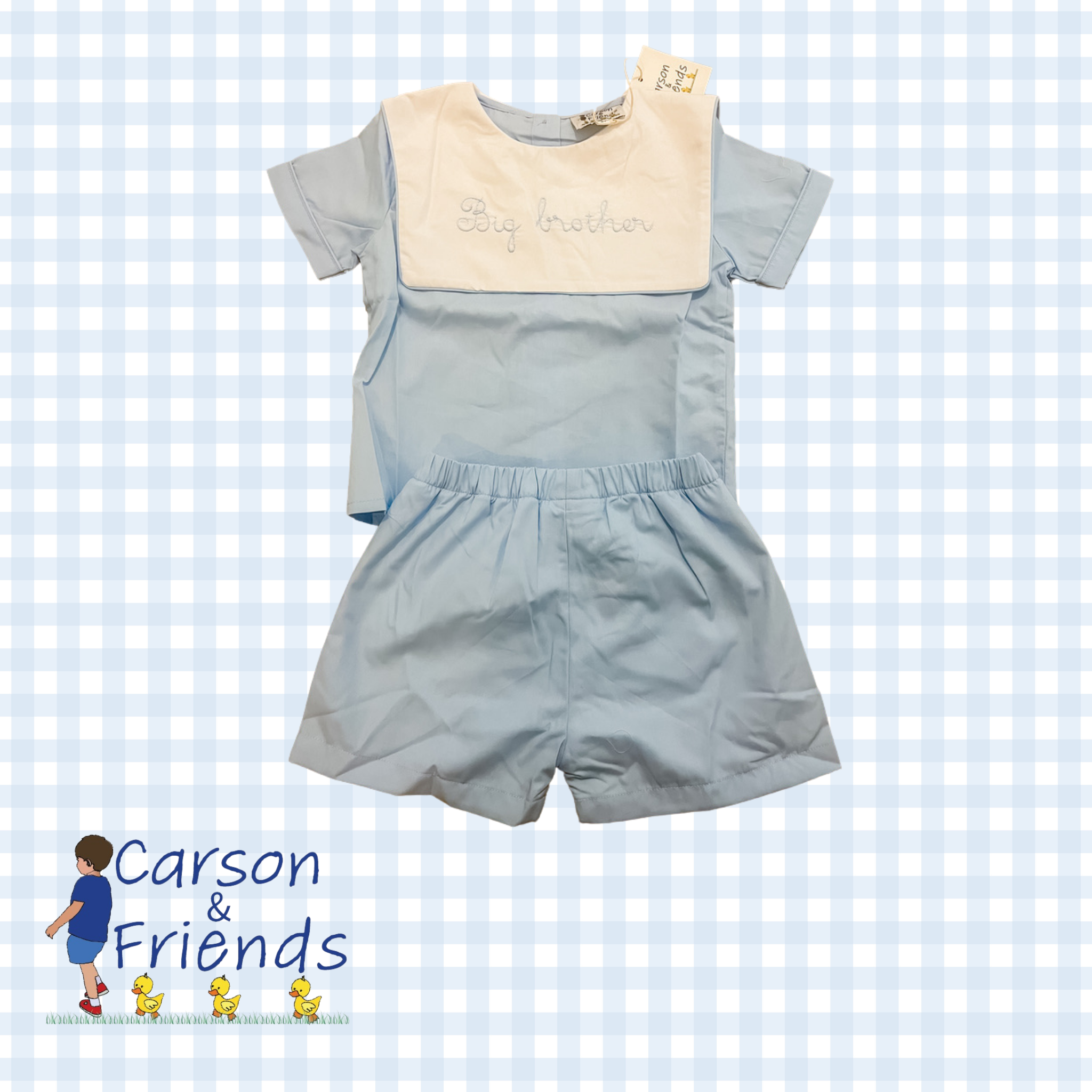Carson and Friends è una linea progettata e prodotta da una mamma che ama vestire i suoi bambini con stili dolci. Offre grembiuli, abiti da gioco stampati, bambù e valigie per neonati e bambini.