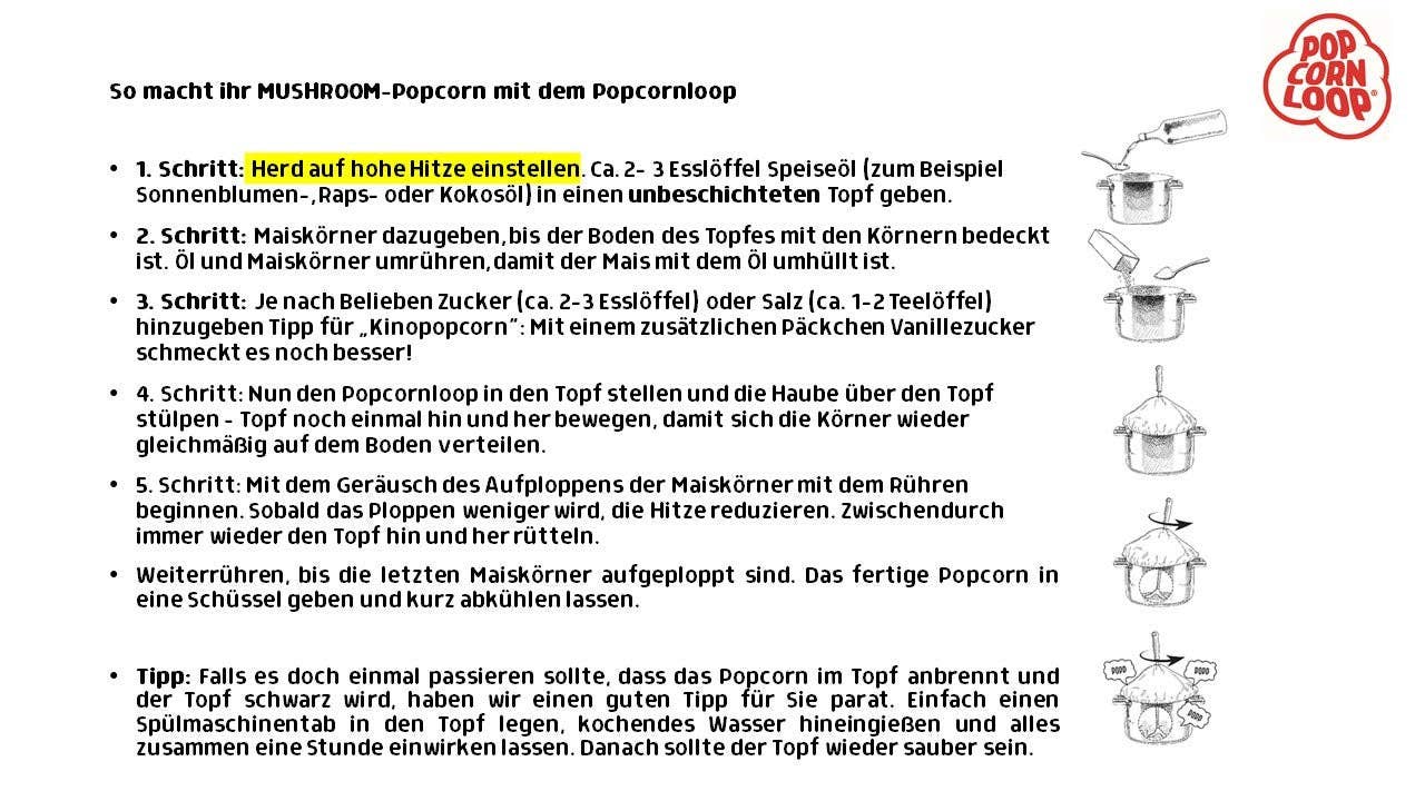 Ora non devi più andare al cinema per i popcorn perfetti. Prepara deliziosi popcorn facilmente a casa con Popcornloop!