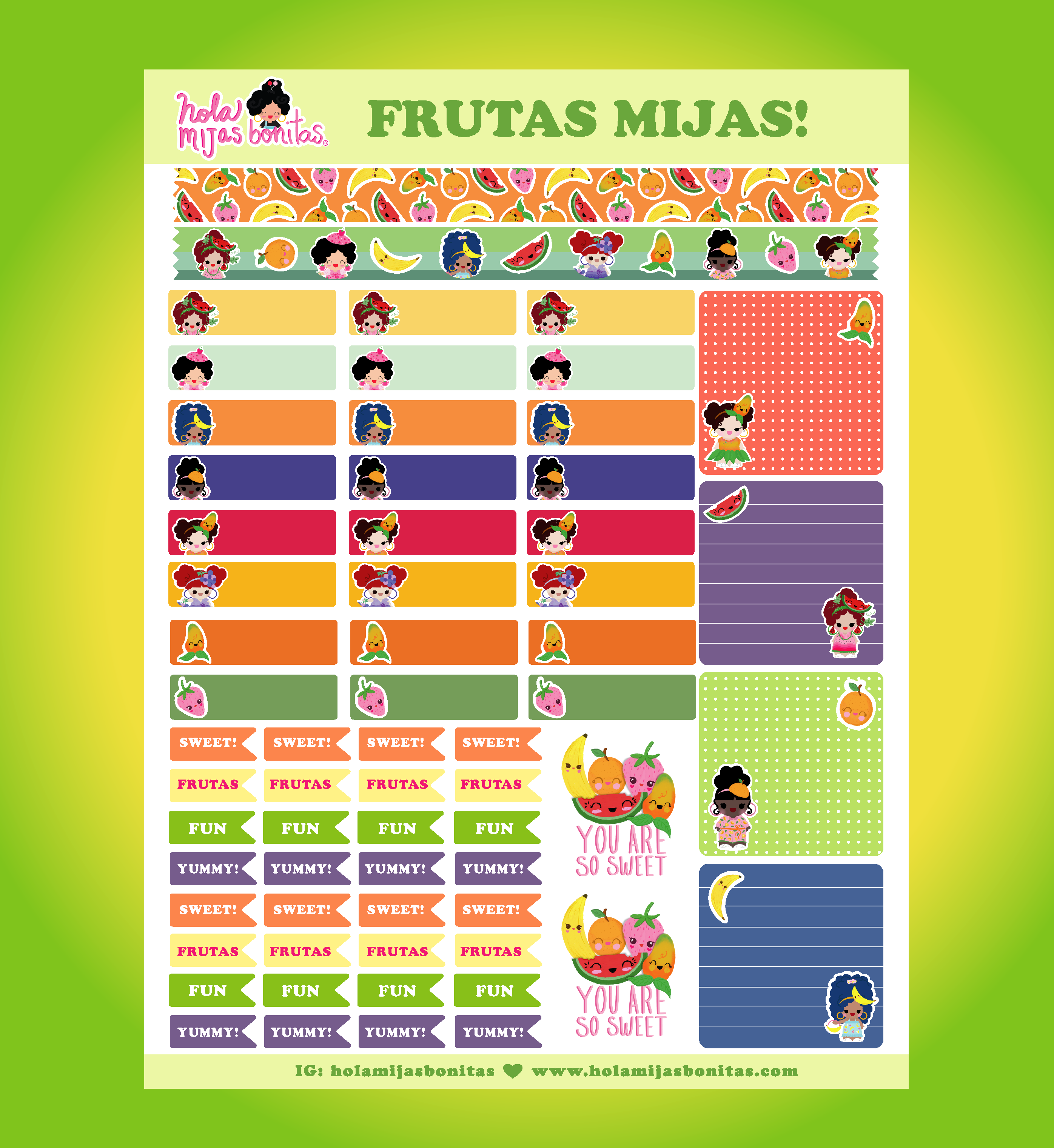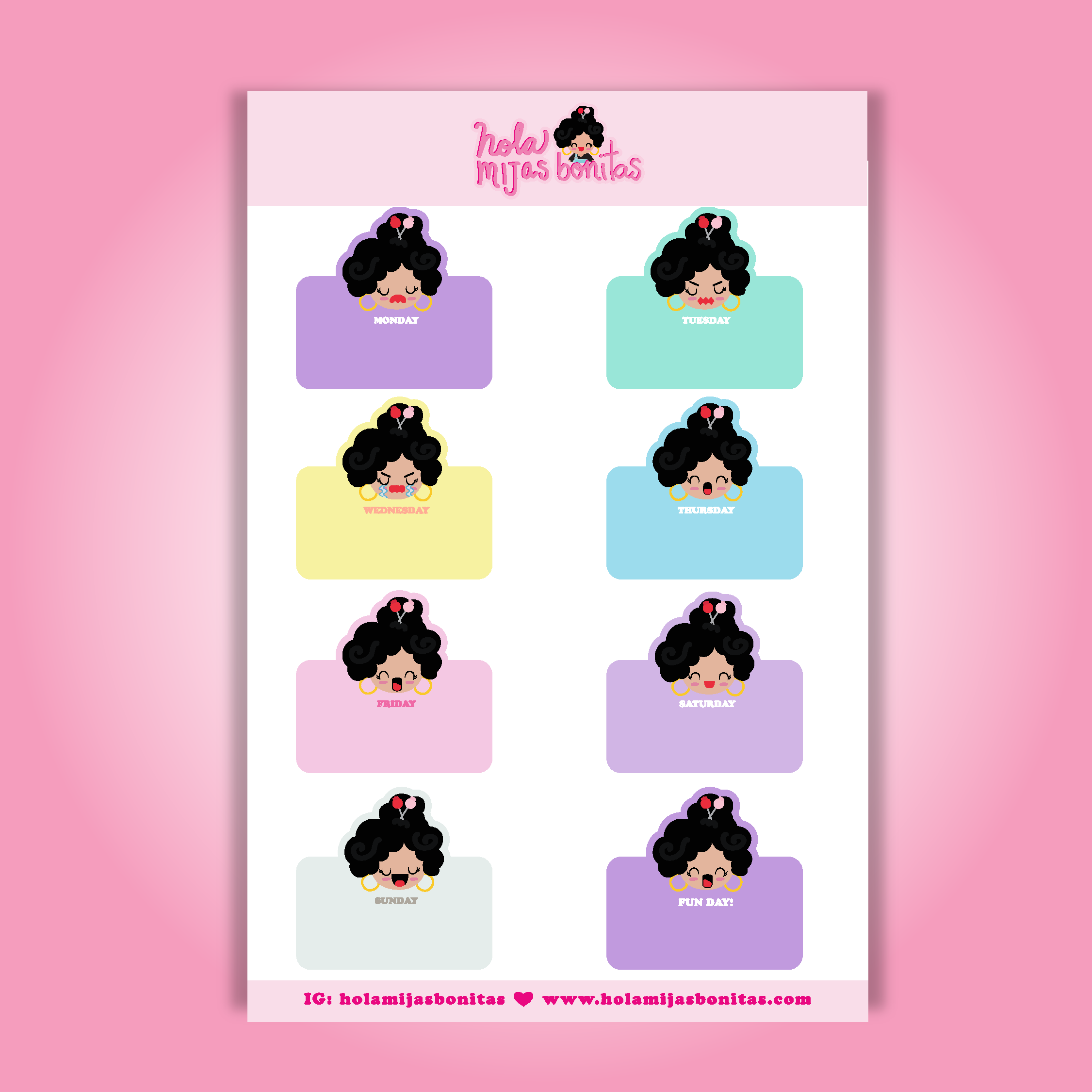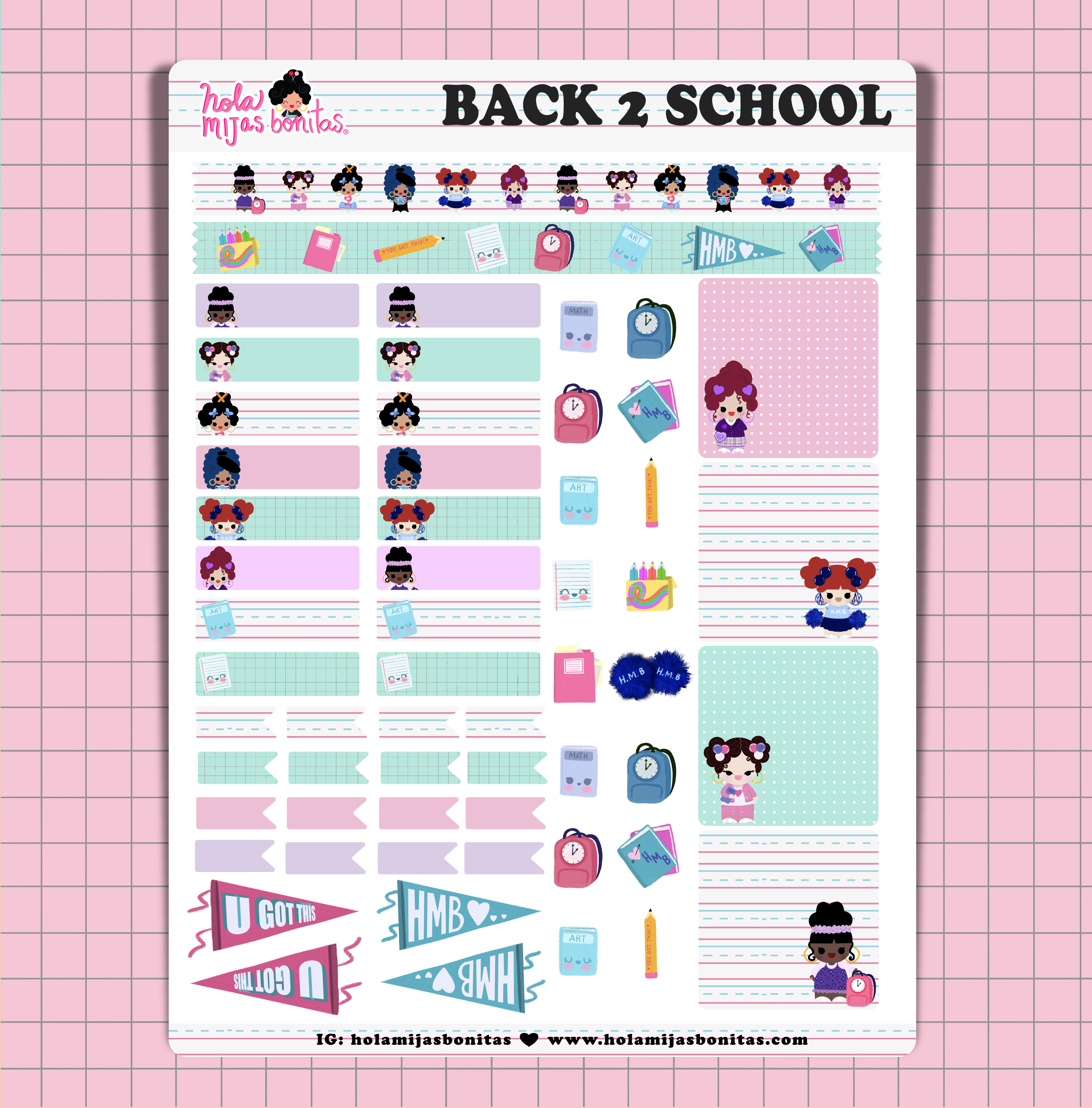 Hola Mijas Bonitas (Hello Beautiful Daughters), è un marchio di cartoleria Latinx che mette in mostra la bellezza della diversità , dell'amicizia e del divertimento attraverso una gamma di prodotti colorati e carini illustrati a mano. Dai taccuini e pacchetti di adesivi ai portachiavi e ai set di francobolli, unisciti ai personaggi Claudia, Amber, Mily, Rosa e Lizbeth mentre crescono in un quartiere dove tutti intorno a loro sono unici e belli! INFORMAZIONI SULL'ARTISTA E FONDATORE: Claudia Ramos ha creato il marchio Hola Mijas Bonitas e i suoi personaggi per condividere le sue diverse e vivaci esperienze di crescita a Los Angeles. L'artista dietro tutte le illustrazioni viste all'interno del marchio, l'obiettivo di Claudia è portare inclusività e diversità nel mondo attraverso i suoi prodotti. Claudia è orgogliosa di essere la prima generazione della sua famiglia, originaria di El Salvador, a laurearsi con un B.A. presso il CSUN e a diventare imprenditrice». Voglio diffondere gioia e felicità nel mondo!»