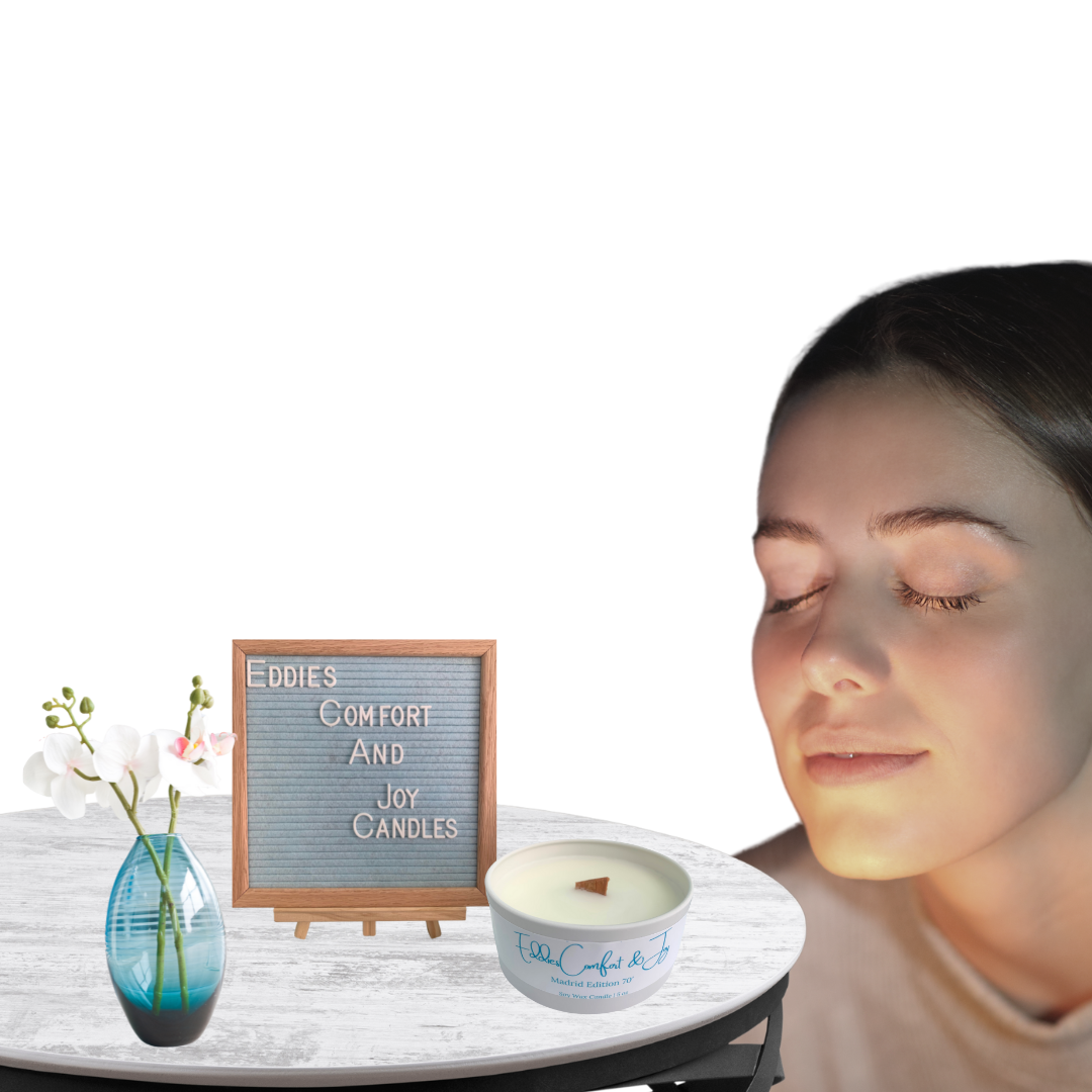 I prodotti Eddies Comfort & Joy sono stati ispirati nientemeno che da Edward Madrid. Mio marito Edward era un figlio, un fratello, un padre, un Dio Padre e un marito straordinari. Era un uomo dai molti talenti, era un motociclista. Ha vissuto il momento e non ha dato nulla per scontato. Nelle sue ultime settimane qui prima di morire il 3 ottobre 2021, c'erano solo alcune cose che gli hanno portato conforto e gioia. Gli piaceva guardare la mia candela tremolante fatta a mano in bagno e i massaggi alle gambe con la lozione di sua sorella. I suoi trattamenti contro il cancro e la dialisi hanno reso la sua pelle molto secca. Se c'era una cosa che ho imparato dalla morte di mio marito, non era dare un giorno per scontato. Insegui ciò che vuoi e realizza i tuoi sogni. Perché? La passione di mio marito erano le motociclette. Ricordo innumerevoli giorni in cui si trovava in garage a riparare una bicicletta. Volevo fare qualcosa in onore di mio marito mentre perseguivo anche la mia passione.