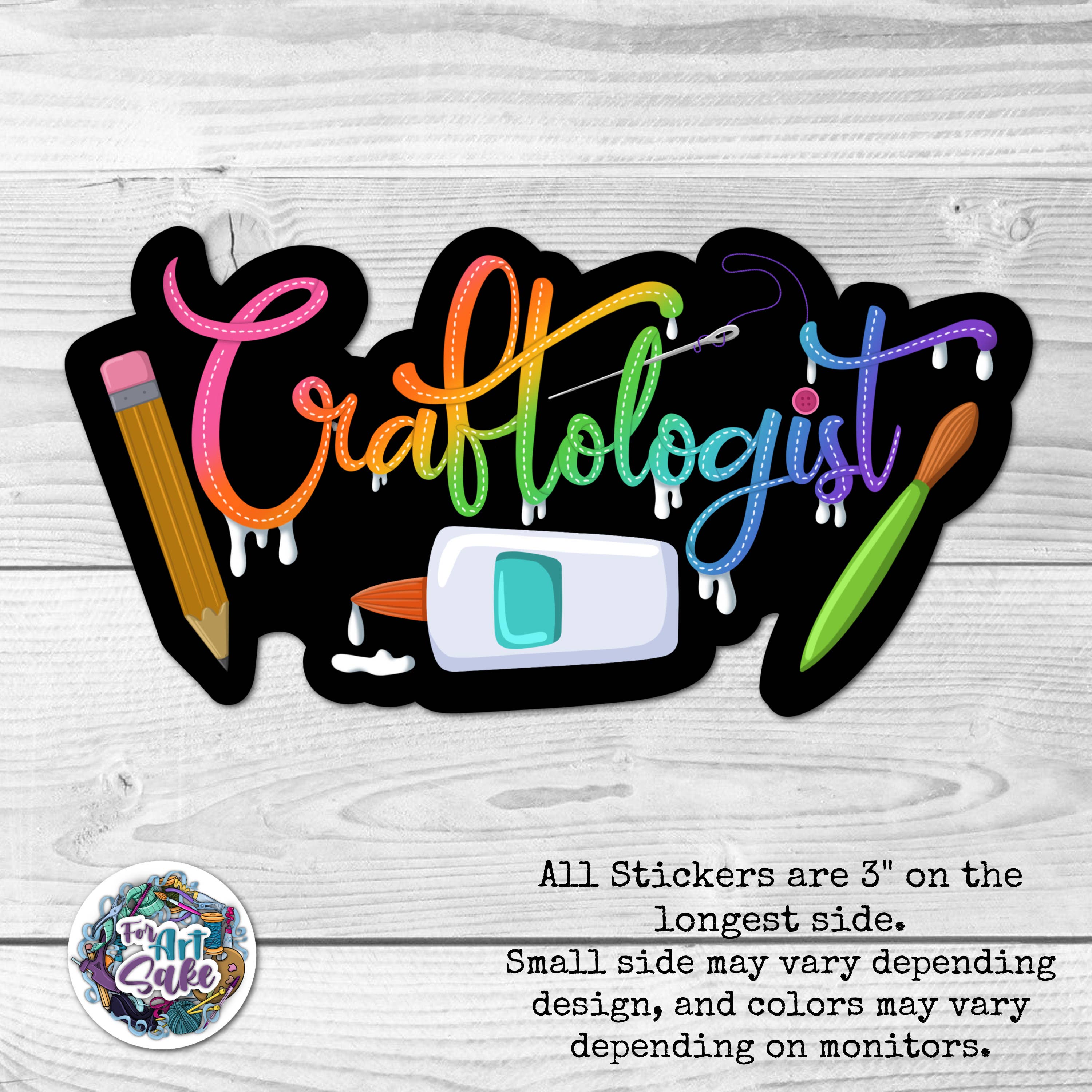 For Art Sake Stickers è stato creato da Nell, proprietaria di Paint Your Own Pottery and Art Studio. Alla ricerca di articoli creativi da vendere, ha iniziato a disegnare disegni da trasformare in adesivi. È iniziato in uno studio d'arte, poi in quattro e ora in più di 80 aziende! Il suo obiettivo era ispirare i clienti ad avere fiducia nella propria arte e in se stessi, e a non preoccuparsi di come gli altri vedono il loro livello di creatività. Si è espanso in articoli motivazionali, divertenti o stimolanti per rallegrare la loro giornata!
