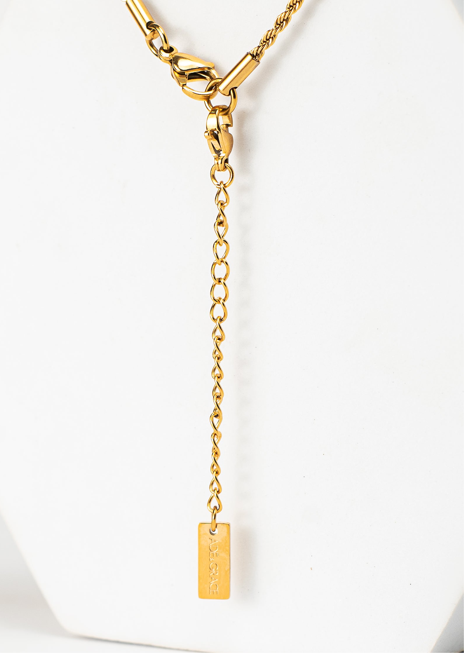 Adé & Grace è gioielleria chic e orientata alla fede: acciaio inossidabile placcato in oro 18K ipoallergenico con un tocco di eleganza - progettata per aiutarti a condividere la tua fede con stile.