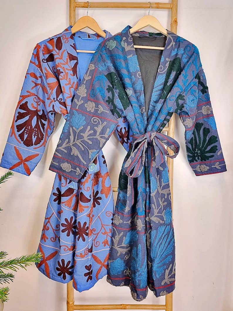 Presso Essential Designs London, cerchiamo di portare lo spirito dell'India tradizionale nell'abbigliamento e negli arredi per la casa, mantenendo viva la magia artigianale ma rendendola accessibile a tutti per essere apprezzata nelle loro case. I nostri prodotti spaziano dal nord del Kashmir all'India occidentale, Rajasthan e Gujarat! Siamo specializzati in copriletti Kantha, coperte invernali, scialli invernali, decorazioni murali in tessuto, kimono in seta riciclata sostenibile, copricuscini, cuscini per la meditazione, tappeti fatti a mano, pavimenti. Essential Designs London è nata dal sogno condiviso di due donne, Minnie e Devi, di intrecciare il patrimonio nel design moderno. Radicata in India e raffinata a Londra, il nostro marchio celebra il lusso silenzioso della creazione in piccoli lotti, dove ogni pezzo porta con sé lo spirito delle mani che lo hanno realizzato. Collaboriamo con artigiani di Jaipur e oltre, onorando tecniche antiche come il ricamo Suzani, la stampa a blocchi a mano e il quilting.