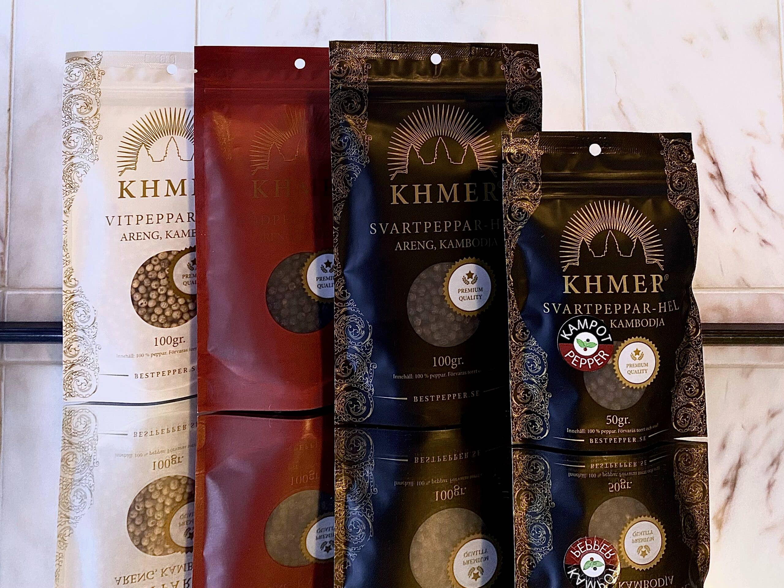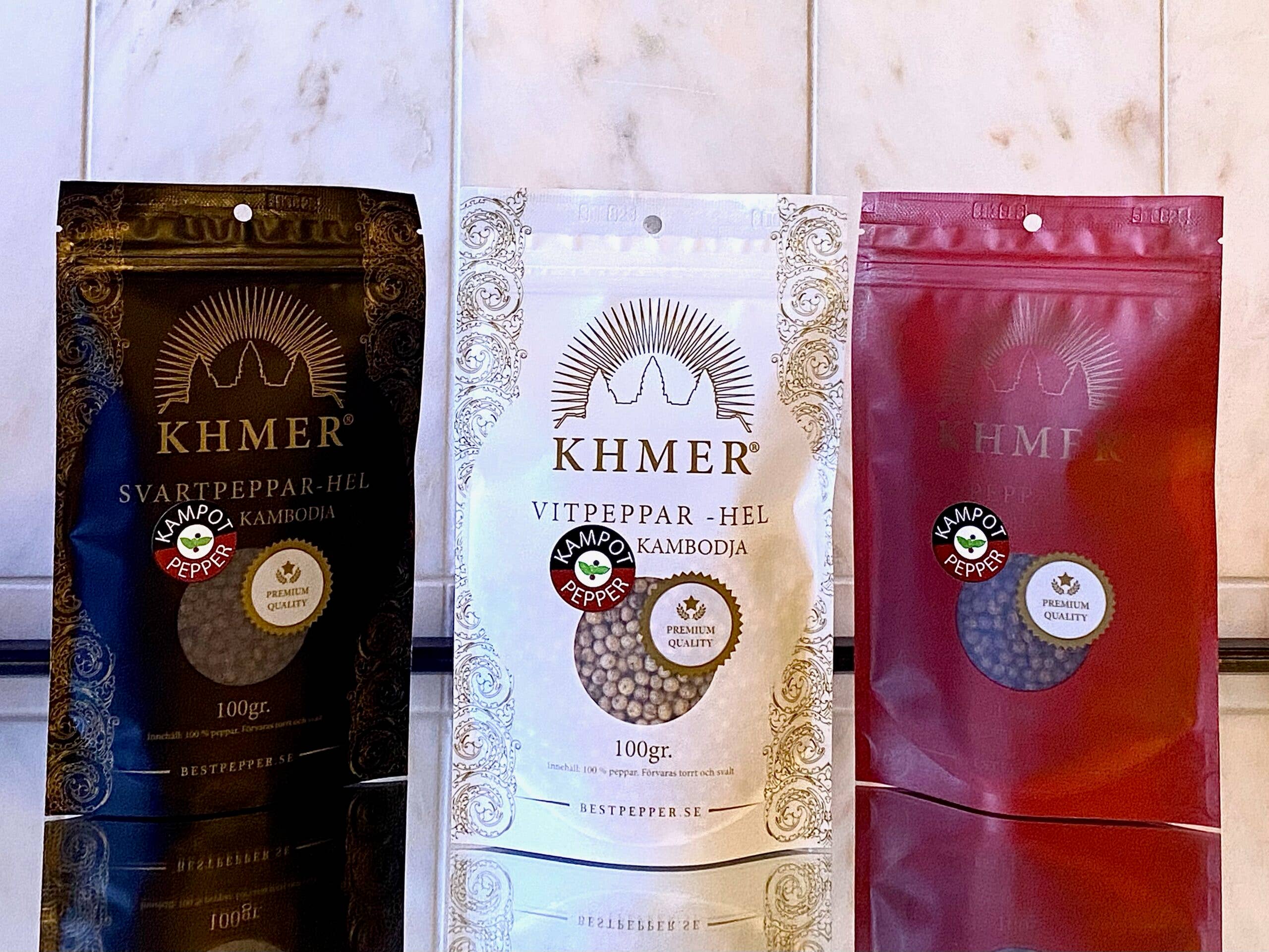 Delizie di Alex äger varumärket KHMER som vill lära Européer att Kambodjansk Ekologisk peppar håller en riktig hög klass. Kanske t.o.m. den högsta. Kambodja har en lång odlartradition på ca 1000 år. I sortimentet ingår den fantastiska Kampotpepparn som många anser vara världens bästa peppar. Denna har också tilldelats GI-Status. Vår rödpeppar är en sagolikt smakrik peppar som passar till det mesta i matlagningsväg. Sociala medier har under några års tid hyllat vår peppar och kommentarerna har varit enbart positiva. Förutom att vi marknadsför Ekologisk peppar så har vi även ett Do Good tänk genom att 4% atill att hjälpa Kambodjanska barn helt utan mellanhänder. Ca 500 barn i 7 skolor får i nuläget hjälp med tandborstning och tandhygien samt att Svenska volontärtandläkare besöker barnen och undersöker deras tänder.