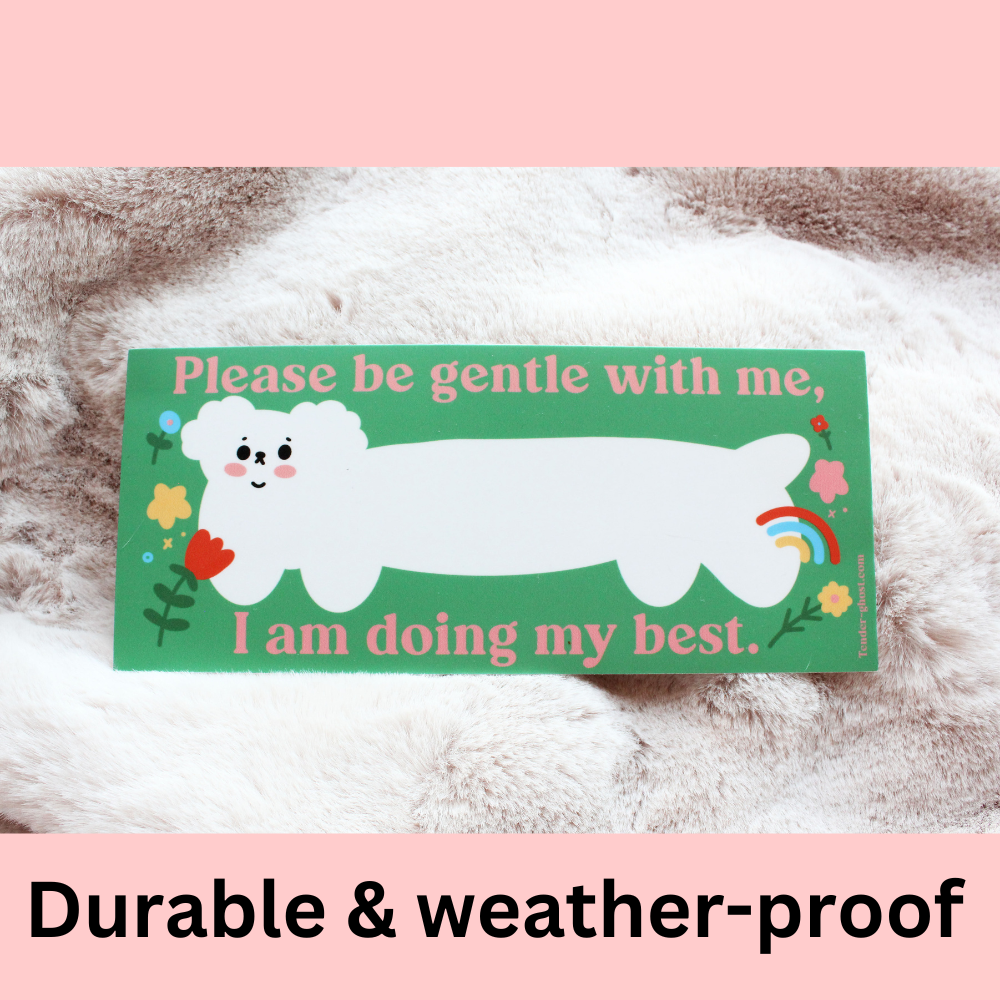 Tender Ghost è stato avviato nel 2015 da Grace Taylor. È l'unica artista/designer! Grace si ispira agli animali, alla morte, alle cose carine, a Internet e alla salute mentale. Pensa che ci sia un potere nel divertirsi anche nella linea temporale più buia (sì, questo è un riferimento comunitario). Non vede l'ora di vedere altre cose strane uscire dalla sua testa e finire nelle tue mani!