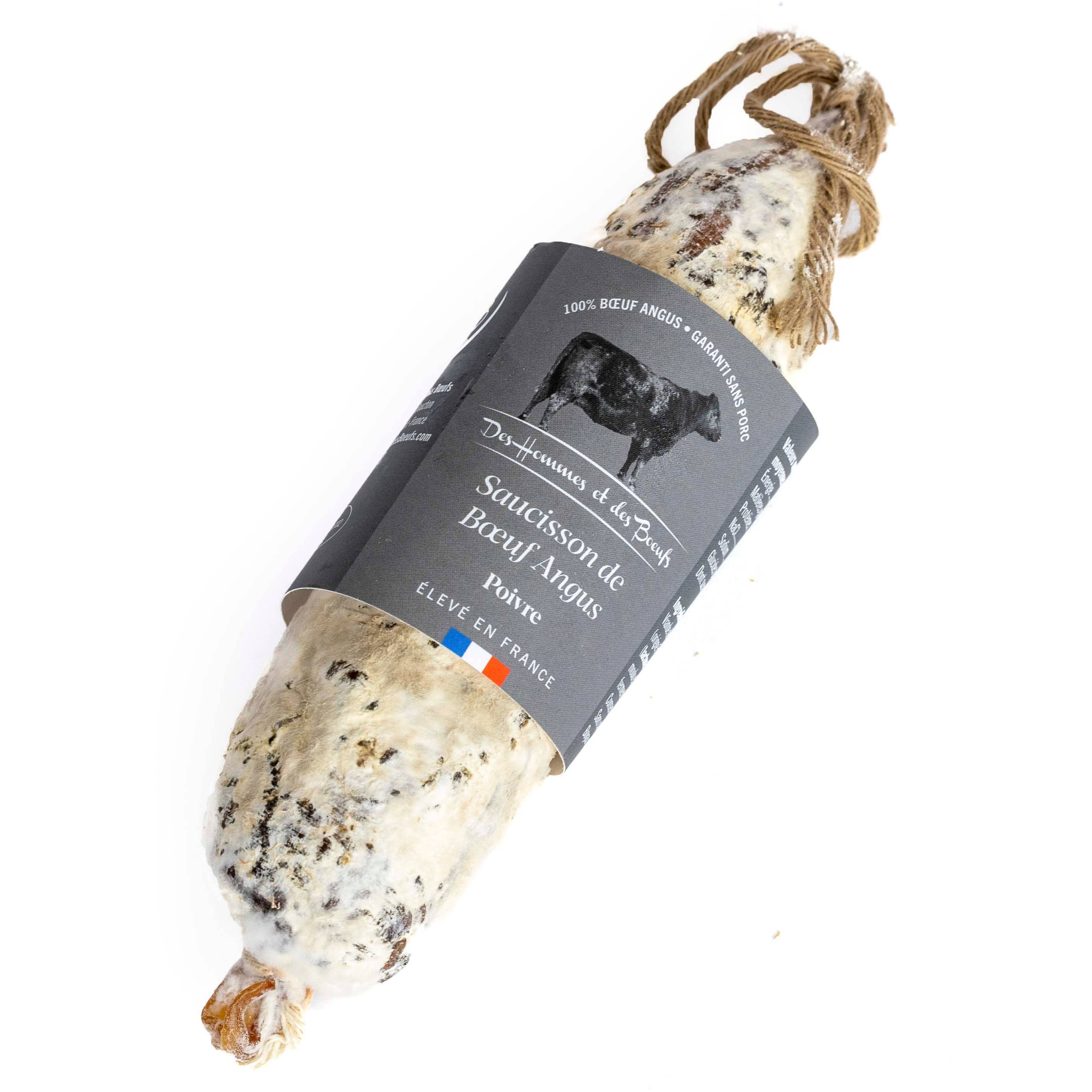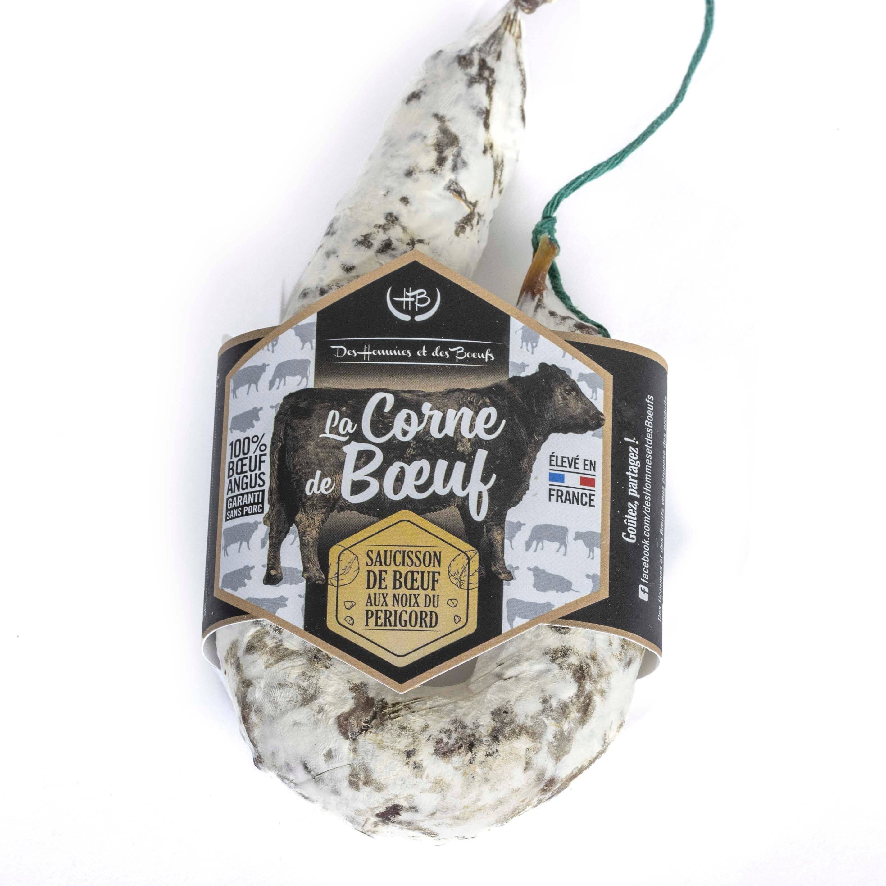 Des Hommes et des Boeuf è la storia di due giovani imprenditori che condividono lo stesso desiderio: offrire salumi pregiati a base di carne bovina francese di qualità prestigiosa, con una tracciabilità esemplare per la soddisfazione di tutti! Samuel, l'allevatore, ha iniziato scegliendo una razza bovina nota per la sua carne: l'Angus, la cui marmorizzazione è fine e sottile! La gestione del bestiame è rispettosa. Gli animali nascono e crescono nella vicina regione della Piccardia dove pascolano sull'erba quasi tutto l'anno, all'aria aperta! Andréa, da parte sua, è responsabile della gestione generale del progetto, dalla creazione di prodotti salumieri al 100% di carne bovina alla loro commercializzazione. Salsicce, rillette e piatti cotti vengono prodotti gradualmente. Successivamente è stata creata una partnership con agricoltori dell'Alvernia, per offrire una gamma di salumi a base di carne bovina Salers/Aubrac. L'entusiasmo è reale nelle macellerie, nelle salumerie, nei caseifici, nelle salumerie e nelle cantine, e anche all'estero: Belgio, Danimarca, Lussemburgo, Spagna, Portogallo.