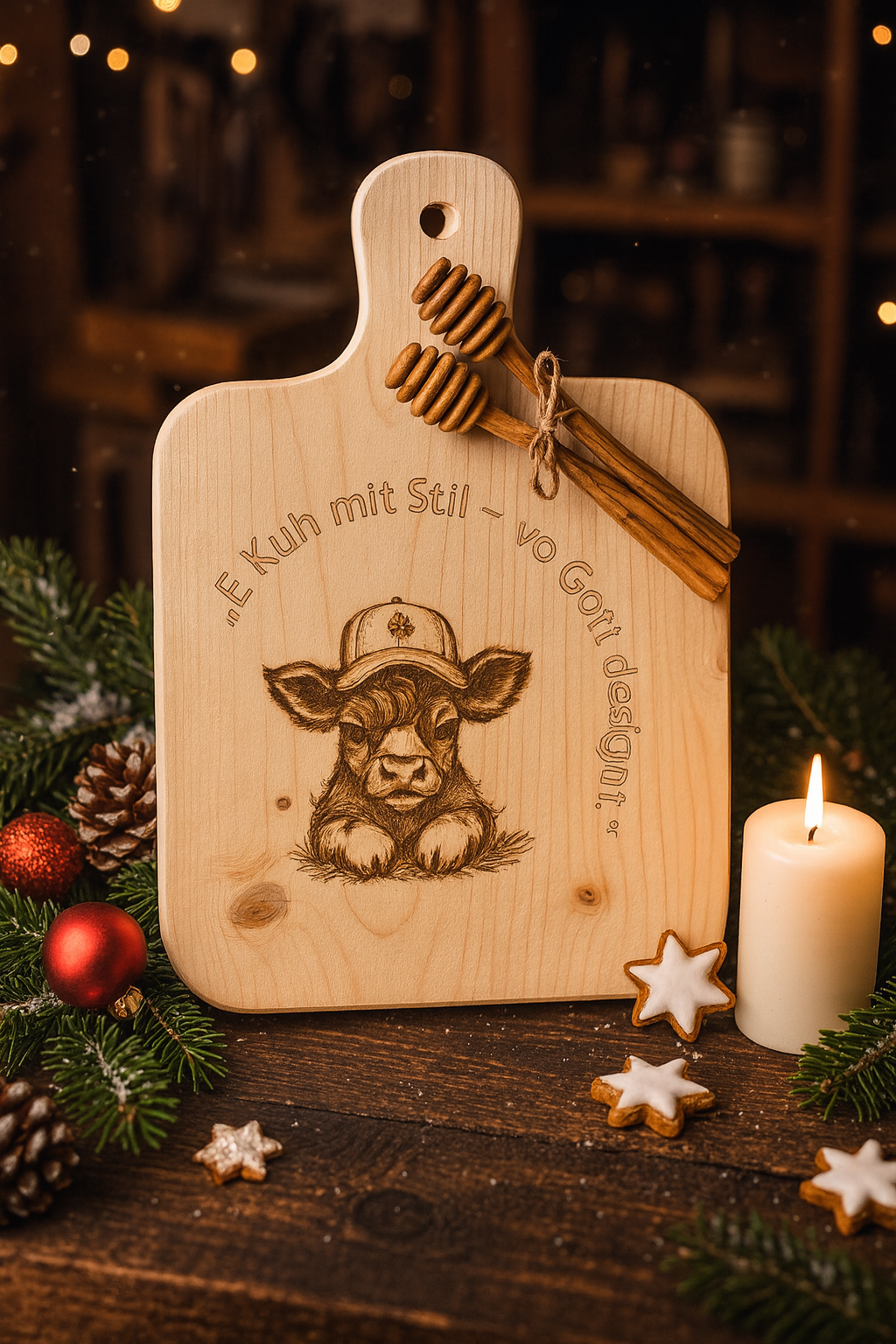 Wunderquelle Emmental è una piccola falegnameria nel cuore dell'Emmental, gestita da una sola donna che realizza ogni pezzo con le proprie mani. Lavoro con semplice legno di abete, rustico, onesto e senza perfezione artificiale. Ogni prodotto porta tracce di segatura, lavoro manuale e vera dedizione. Ho fondato Wunderquelle perché credo che le cose possano avere un'anima. Il legno racconta storie. Porta tranquillità, casa e calore in un ambiente, esattamente ciò che manca nel nostro mondo frenetico. I miei design sono semplici, legati alla natura e ispirati alla vita di campagna: mucche, montagne, fattorie, forme chiare e tanto cuore. Non produco in serie. Produco in momenti, con cura, tempo e rispetto per il materiale. Chi acquista un pezzo di Wunderquelle non ottiene un prodotto industriale, ma un vero artigianato svizzero. Robusto, autentico e fatto per durare a lungo.