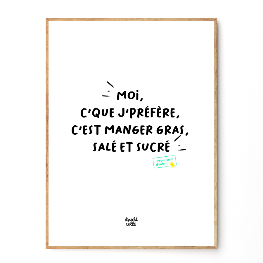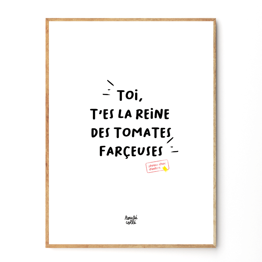 Touché Collé è il marchio di lifestyle 100% benessere per tutti coloro che coltivano la propria anima infantile! Selezione di oggetti di uso quotidiano reincantati dalle parole divertenti, poetiche, filosofiche, svasate, gonfie e ben intrise dei bambini. Cartoleria pop pronta da incollare, stampata da una tipografia artigianale nel cuore di Parigi, e look rock in cotone organico con fantastici messaggi e fonti di mojo. In breve, il tocco decorativo che esce dalla folla e le basi si sono risvegliati come mai prima d'ora! Tutte le piccole frasi shock evidenziate sui nostri prodotti sono parole che escono dalla bocca dei più piccoli. E sì, non devi essere Booba o Florence Foresti per uscire dalle battute strazianti! Devi solo essere un bambino con un dono innato per la meraviglia.