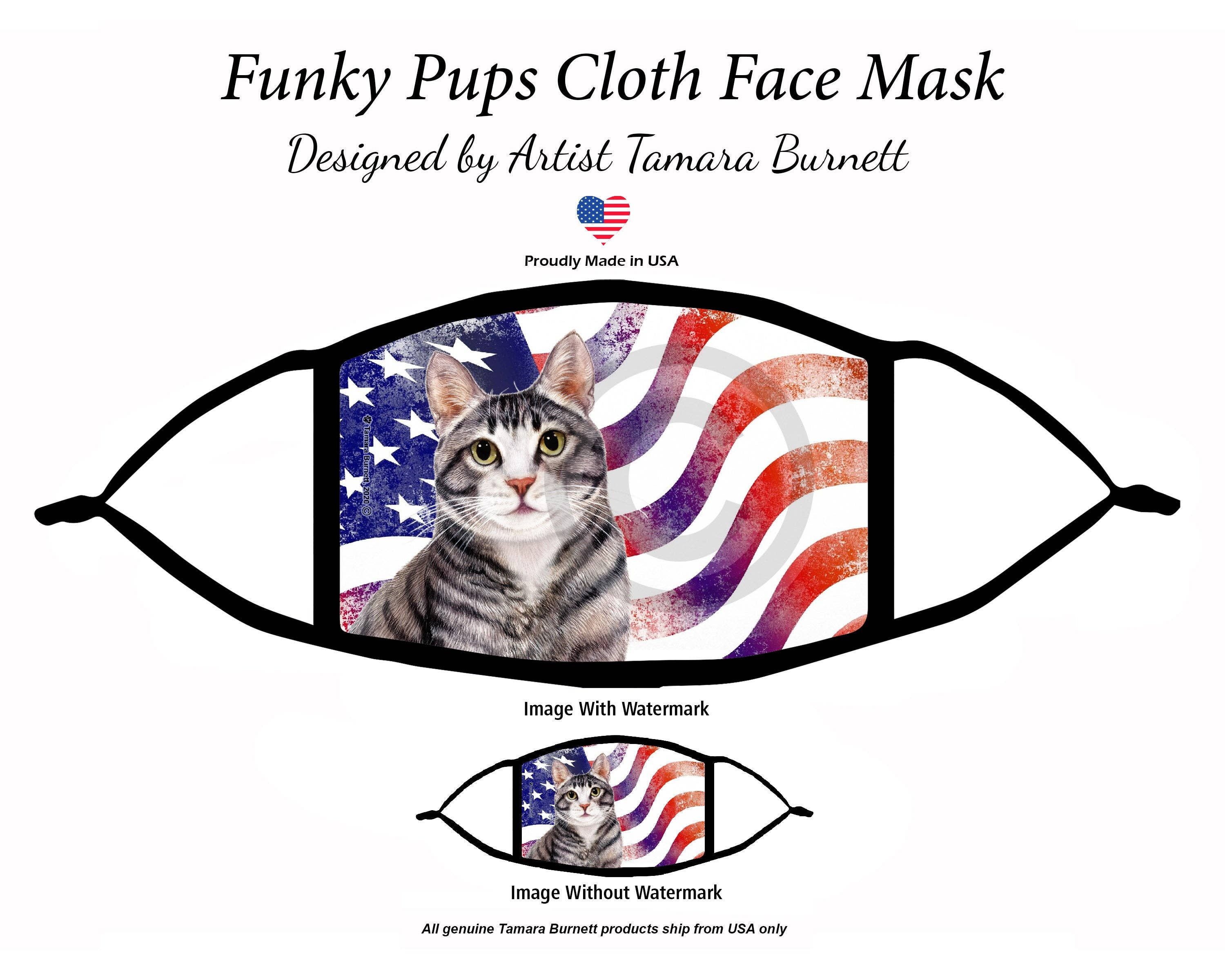 Prodotto negli Stati Uniti. Maschera viso amante dei cani, maschera lavabile, maschera riutilizzabile. Maschera viso per amanti dei cani con orgoglio realizzata negli Stati Uniti e presenta opere d'arte del rinomato artista Tamara Burnett. Questa maschera è realizzata con 3 strati di poliestere 100% di alta qualità . Dimensione maschera viso: 7,5 «L x 4.5""H. Maschere viso con copertura del viso più ampia vestibilità super comoda e facile da indossare. Lavabile e riutilizzabile! Perline in gomma per regolazioni della lunghezza disponibili per volti adulti più piccoli.
