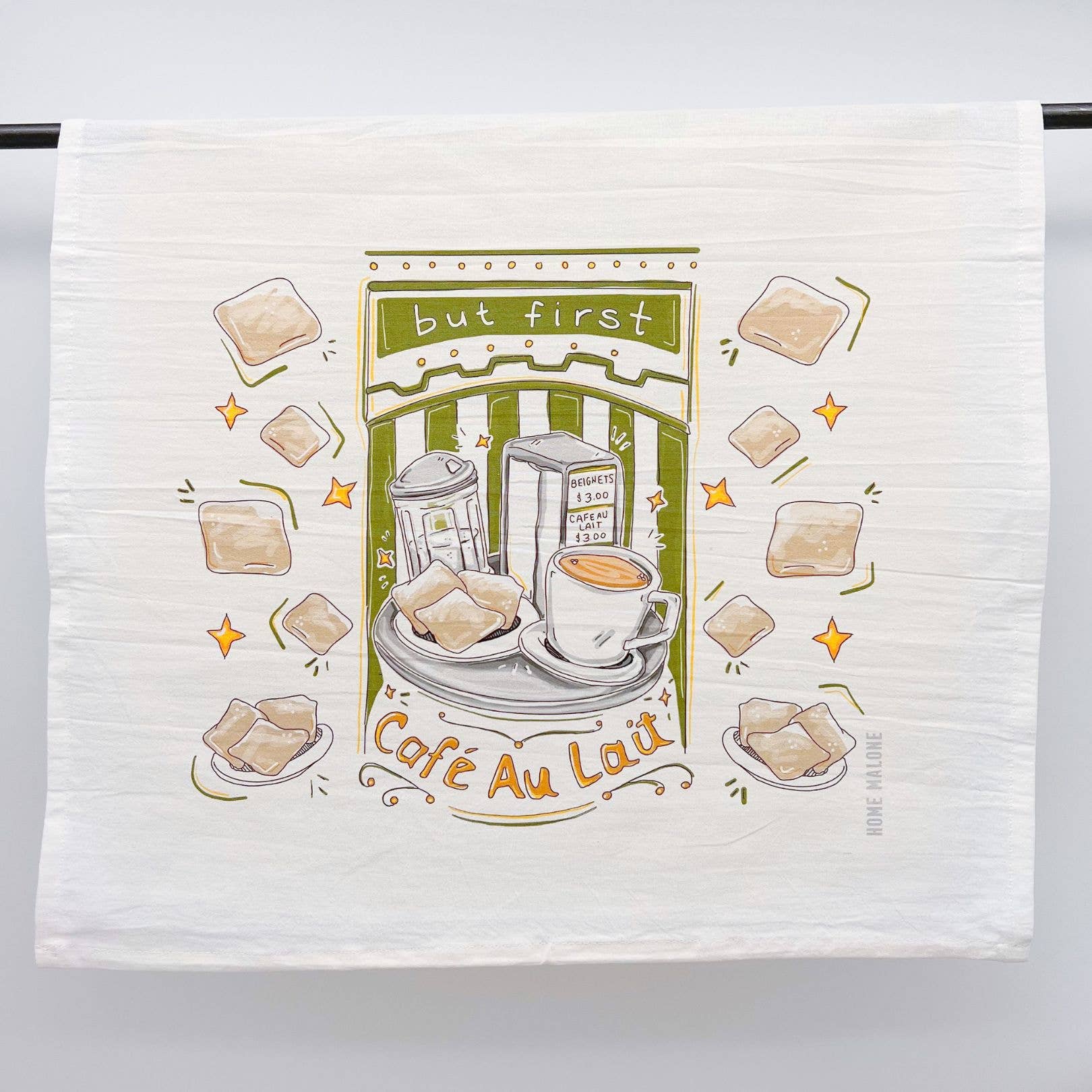 *NUOVI ASCIUGAMANI!* Abbiamo rimosso l'opzione di bordatura sui nostri strofinacci, tuttavia le informazioni sul prodotto e sulla cura sono ora su un'etichetta cucita! New Orleans è conosciuta soprattutto per la sua architettura colorata e storica, inclusa la cattedrale di St. Louis nel quartiere francese. Questi assorbenti strofinacci di farina sono 100% cotone, misurano 18" di larghezza x 28" di lunghezza e sono dotati di un anello per appenderli nell'angolo superiore. Illustrato dall'artista di New Orleans Kristin Malone Johnson e stampato in Louisiana su un asciugamano bianco prodotto in India. Lavare in lavatrice in acqua fredda con colori simili. Usare solo candeggina senza cloro. Asciugare in asciugatrice senza calore. Stirare a caldo se necessario.