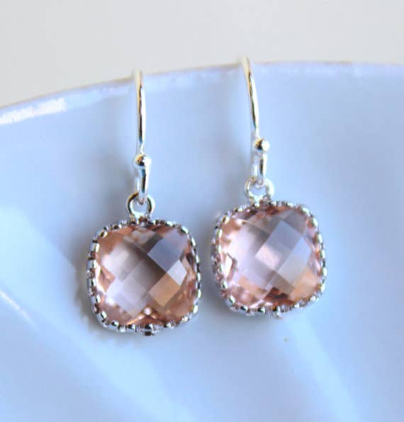 La perla d'acqua dolce bianca misura circa 9 mm. I blocchi di vetro quadrati sono 9 mm con uno spessore di 3 mm. Gli auricolari sono in argento sterling. La lunghezza degli orecchini è di circa 3,8 cm. Questi orecchini sono semplicemente stupendi. Sei sicuro di distinguerti in questi bellissimi orecchini!