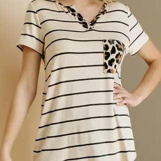 Top in maglia colorblock manica corta con dettaglio incrociato Colorblock con stampa leopardata, tinta unita e contrasto a righe Vestibilità rilassata/Orlo leggermente arrotondato