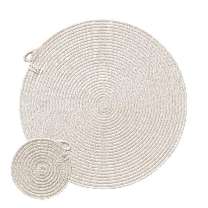 Questi eleganti cestini da pavimento sono alti e sono dotati di manici lunghi per un facile trasporto. Possono essere utilizzati per riporre una varietà di cose: biancheria, coperte, asciugamani, cuscini sparsi, ecc. I cestini Mia Mlange sono realizzati in corda di cotone 100% che cuciamo accuratamente insieme con una tecnica di avvolgimento. Il cotone viene coltivato localmente in Sudafrica da agricoltori membri della Better Cotton Initiative (BCI). Media: D 14 pollici x H 12 pollici Grande: D 16 pollici x H 18 pollici