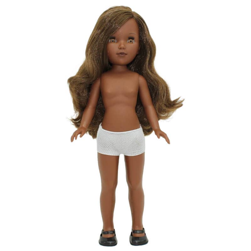 Bambola Simona 40 cm. Capelli lunghi 100% pelle mulatta nuda