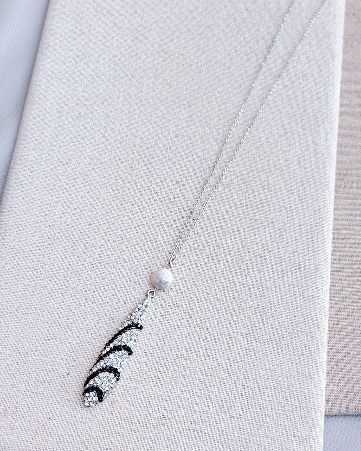 Collana lunga in argento con ciondolo geometrico in strass Art Déco