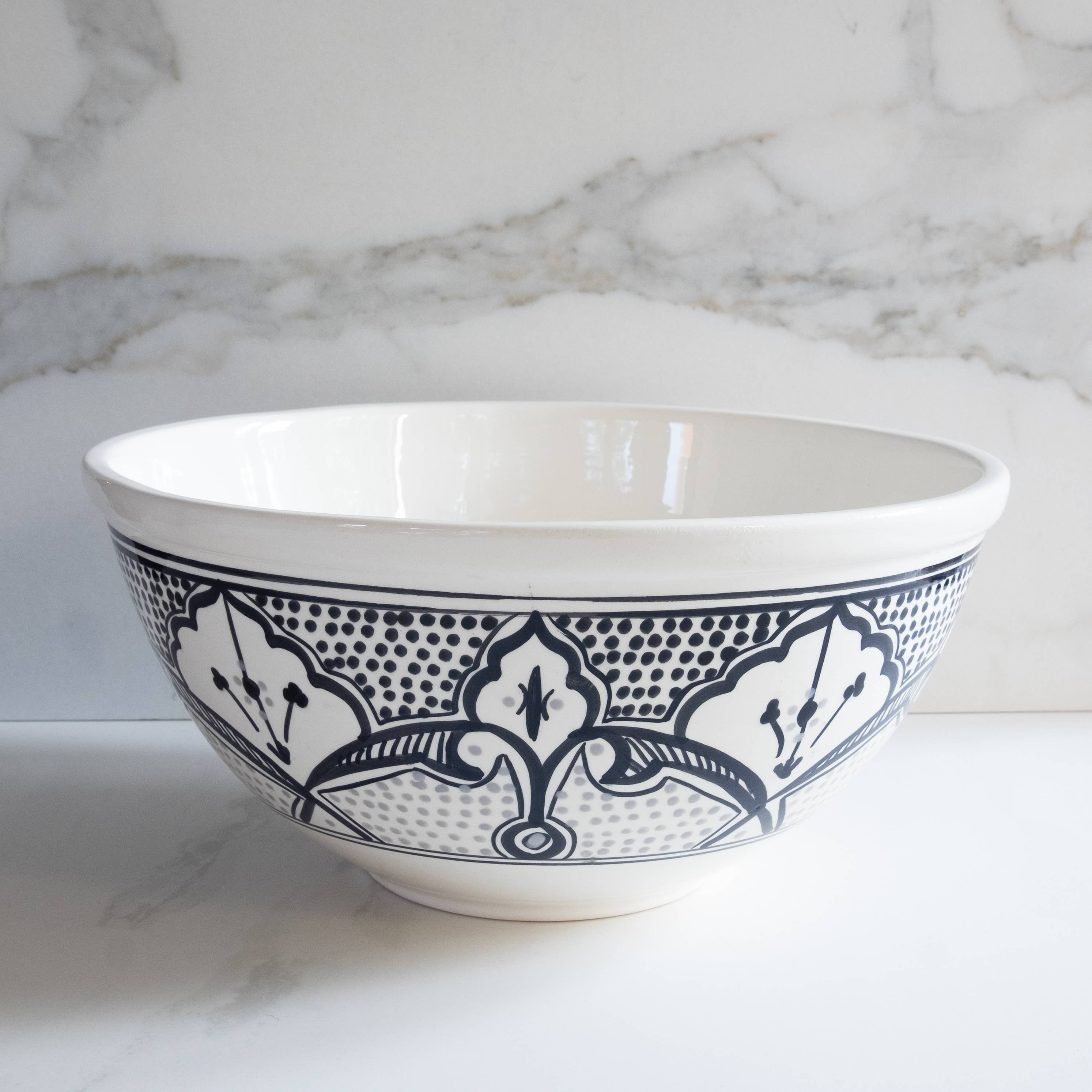 Informazioni sul prodotto Porta colore e carattere alle tue tavole con la nostra Ciotola da Portata Profonda in Terracotta Dipinta a Mano da 10" — un vivace connubio di arte e funzionalità quotidiana, ispirato al design e ai colori mediterranei. Le nostre ciotole sono: *10" D x 3,5" H *Realizzate in terracotta *Dipinte a mano libera con smalto senza piombo e sicuro per alimenti *Testate per la sicurezza alimentare *Adatte al microonde e lavabili in lavastoviglie Sobremesa è un'impresa sociale che collabora con uno studio artigianale tunisino, dove oltre una dozzina di artigiani lavorano insieme in un laboratorio di 8.000 piedi quadrati per celebrare sia l'artigianato tradizionale che il design moderno audace. Perfetto per: Decorazioni primaverili 2026. Brunch di Pasqua, cene, Festa della Mamma. Sono regali premurosi per la padrona di casa e per inaugurazioni, liste nozze, regali per la padrona di casa, tavole in stile mediterraneo e regali di inaugurazione premurosi, articoli per la casa etici. Considera anche: Articoli per la casa etici, regali sostenibili, decorazioni per la casa, regali fatti a mano, apparecchiature per la tavola delle feste ecologiche per casa e cucina.