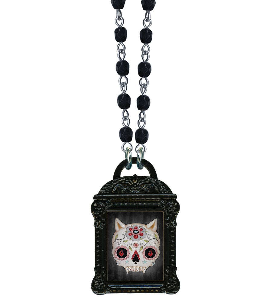 Immagine di Charles DeMar di Kelly Vivanco in una collana vittoriana con cornice ovale a fiocco • Scegli lo stile della collana • La collana misura circa 17 pollici di lunghezza • Il ciondolo con cornice a forma di arco misura 1,5 «x 1" • Immagine fotografica rivestita in poliuretano • Metallo argentato o smaltato nero • Costruzione di alta qualità