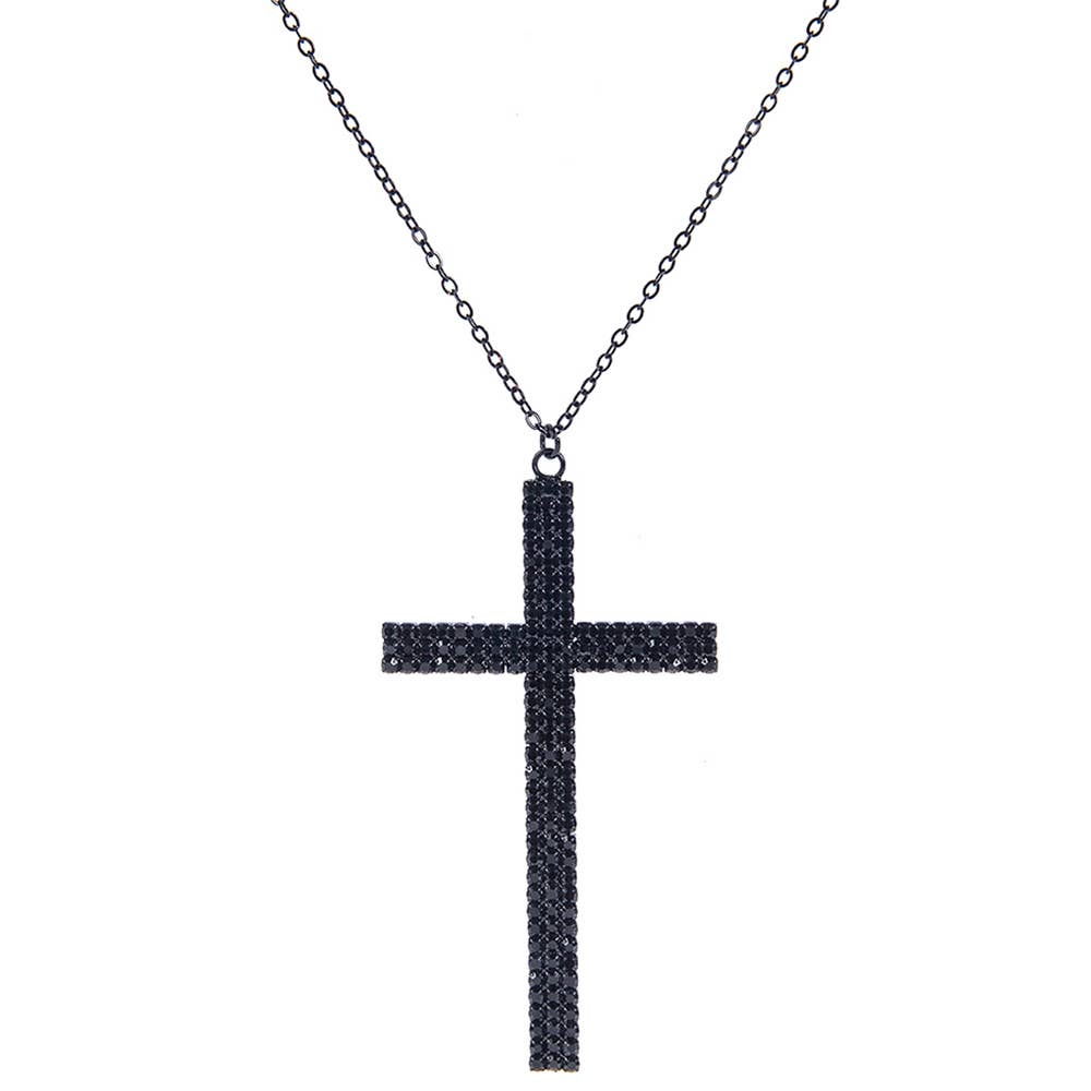 COLLANA CON CIONDOLO A FORMA DI CROCE CON STRASS 18096 IN VENDITA ALL'INGROSSO