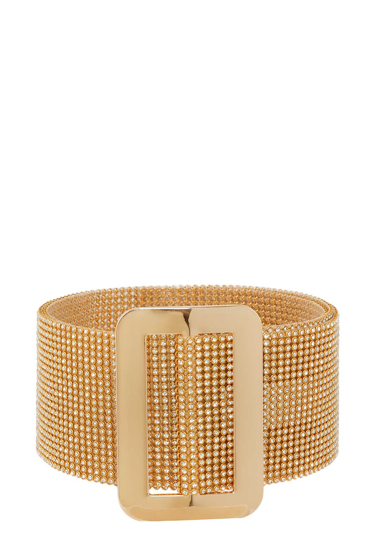 * Cintura metallizzata Plus Size con fibbia in strass con catena * POLIURETANO/STRASS. * CA. LARGHEZZA: 1,5". LUNGHEZZA: 52"