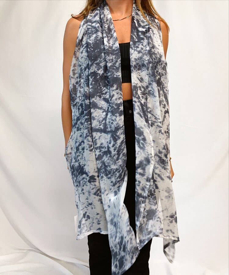 Grande avvolgimento che può essere indossato come sciarpa o scialle. Perfetto per viaggiare e utilizzare come coperta leggera. 137,6 x 137,2 cm. 63% Seta, 37% Lana... Più morbido della lana, più caldo della seta. Tinto a mano e realizzato in Winooski, VT. A causa della natura di essere fatto a mano, ogni pezzo avrà lievi variazioni. Lavare a mano in acqua fredda con sapone delicato o shampoo.