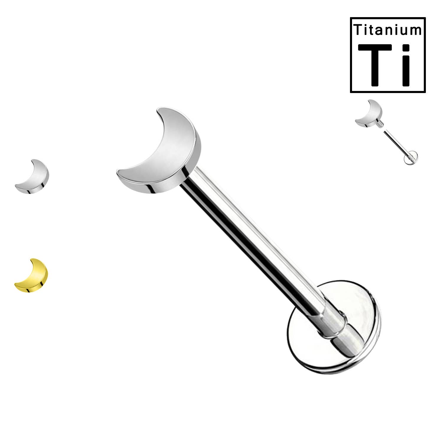 Bodytrend - Labret in titanio impiantabile 18G/1,0 mm, 16G/1,2 mm, 14G/1,6 mm all'ingrosso