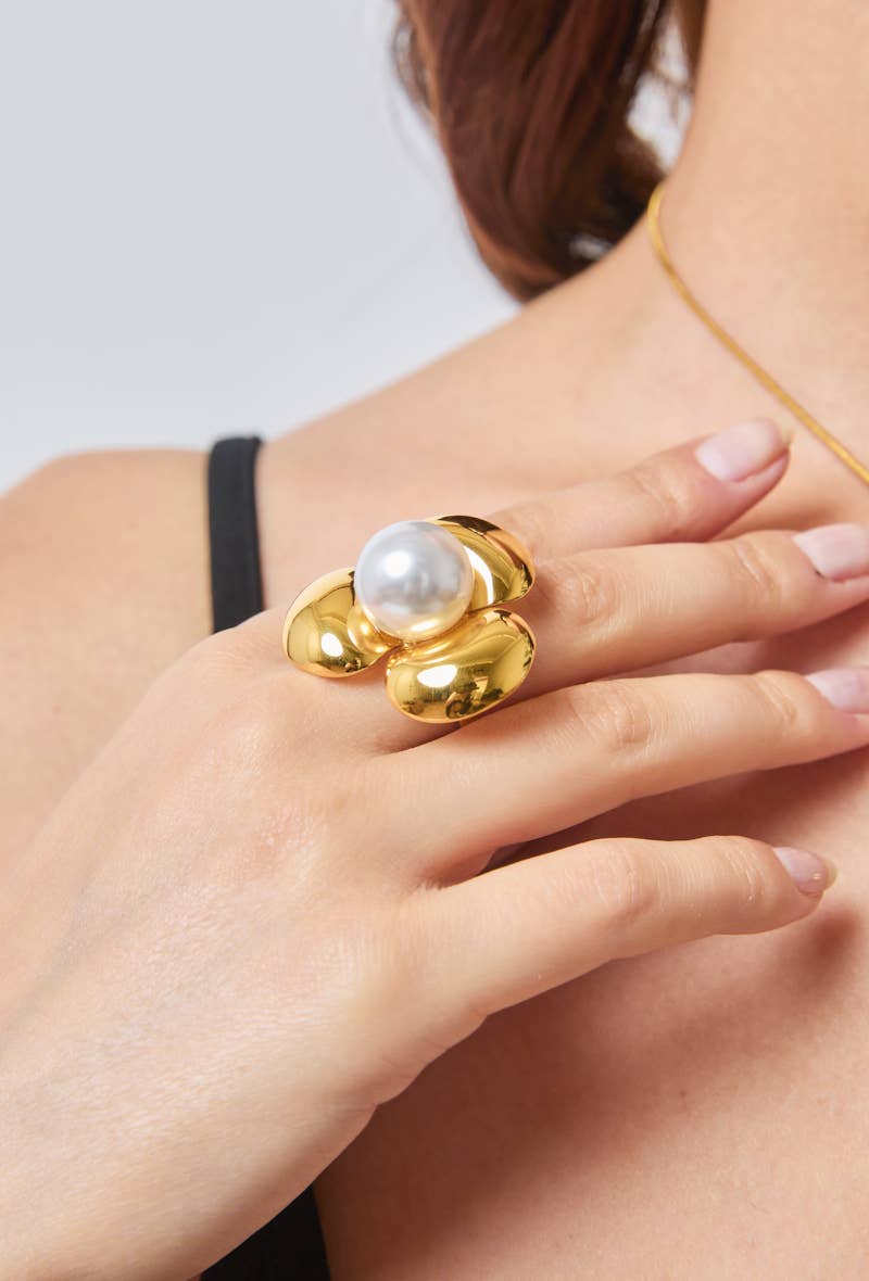 Anello con perle in acciaio inossidabile Resistente all'acqua e non si scurisce Garantito senza nichel, senza cadmio, senza piombo e sale.