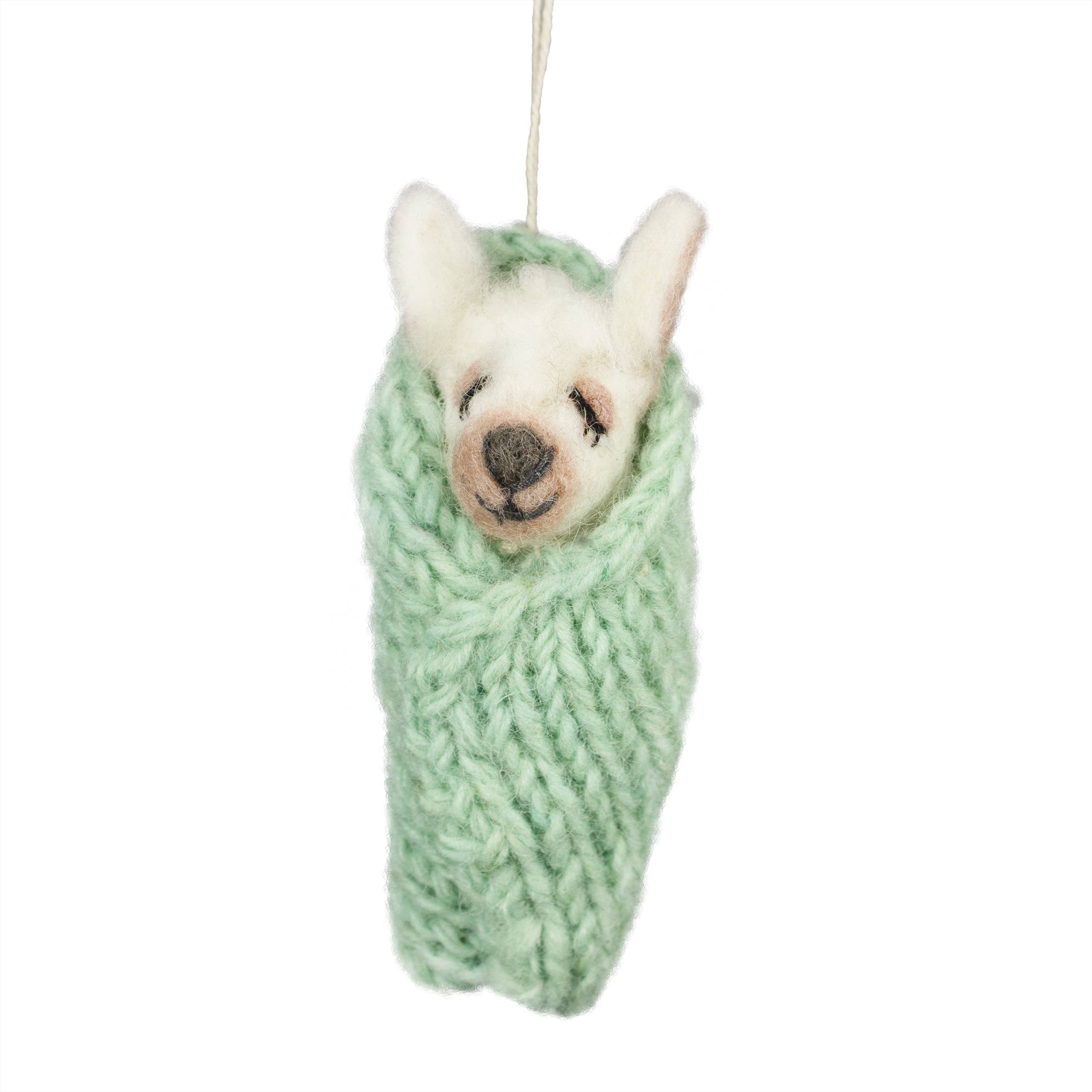 Rannicchiatevi con questo simpatico e accogliente coniglietto in una coperta. Un ottimo regalo per ogni stagione. Un'etichetta festiva con scritta «Fair Trade Home & Garden» pende da un anello da appendere da 7,6 cm. Realizzato esclusivamente per DZi Handmade, membro della Fair Trade Federation. 4 «h x 1.75" w