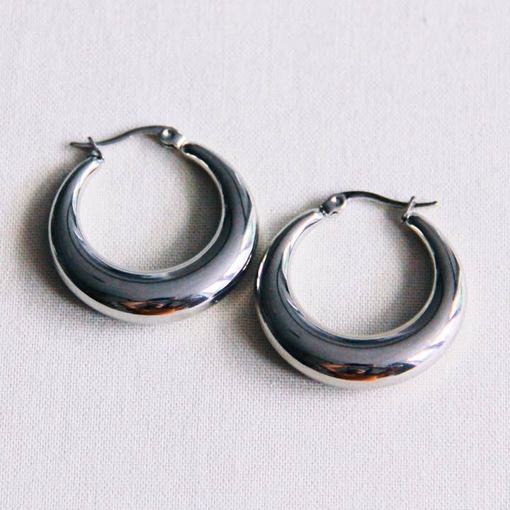 VENDIAMO i nostri orecchini in coppia. L’orecchino ha un diametro di 16 mm ed è largo, con uno spessore di 4 mm. Realizzato in acciaio inox resistente, senza scolorimenti.