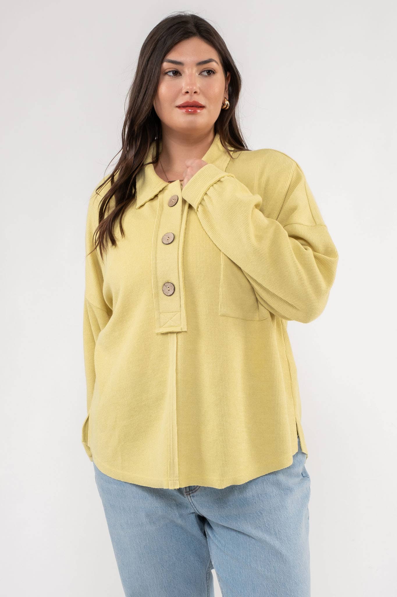 SKU: B3FT1025_ALMOND Paese di produzione: Vietnam Lunghezza delle maniche: Maniche lunghe Motivo: A tinta unita Scollo: Con colletto Stile: Casual e Classico Vestibilità: Di tendenza