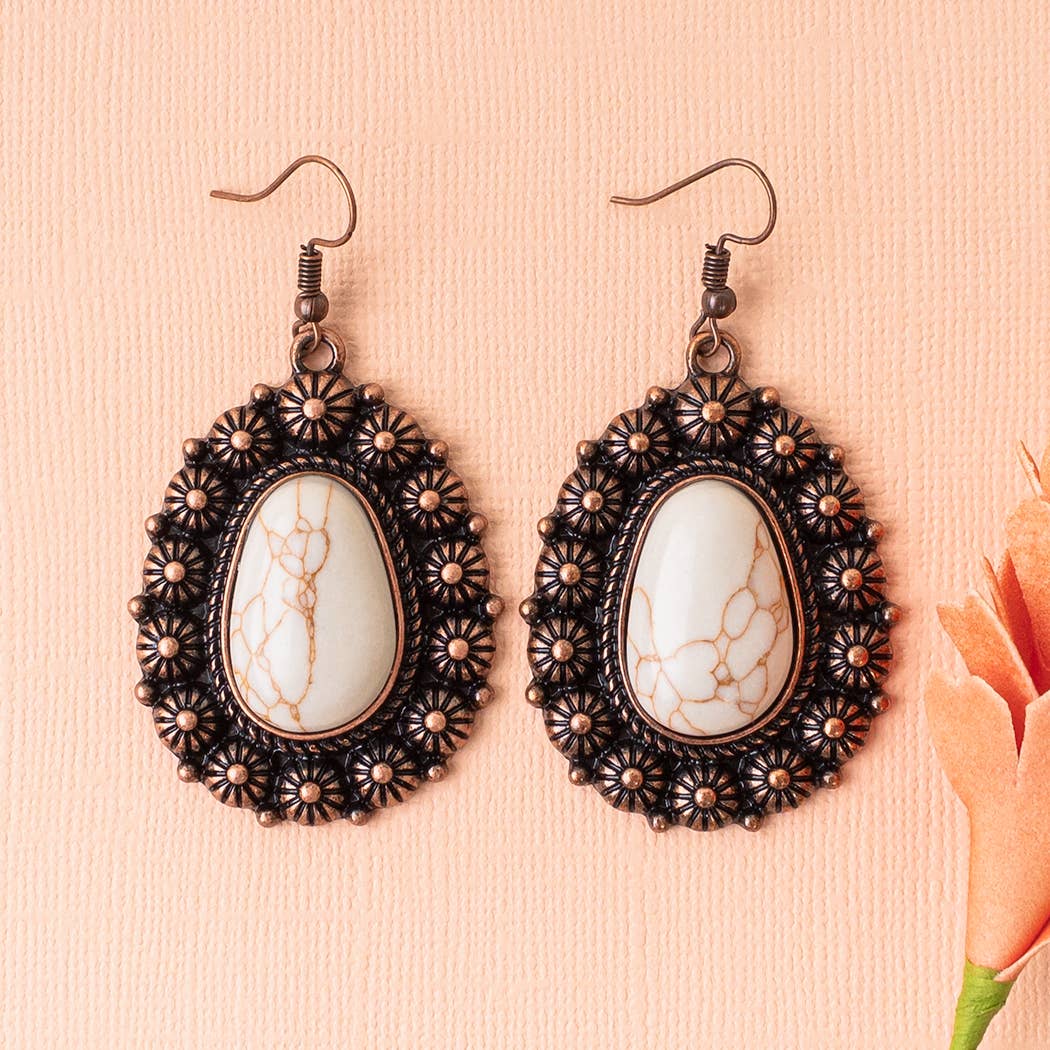 Orecchini a Fiore di Zucca - Pietra Turchese con Gancio a Pesce all'ingrosso