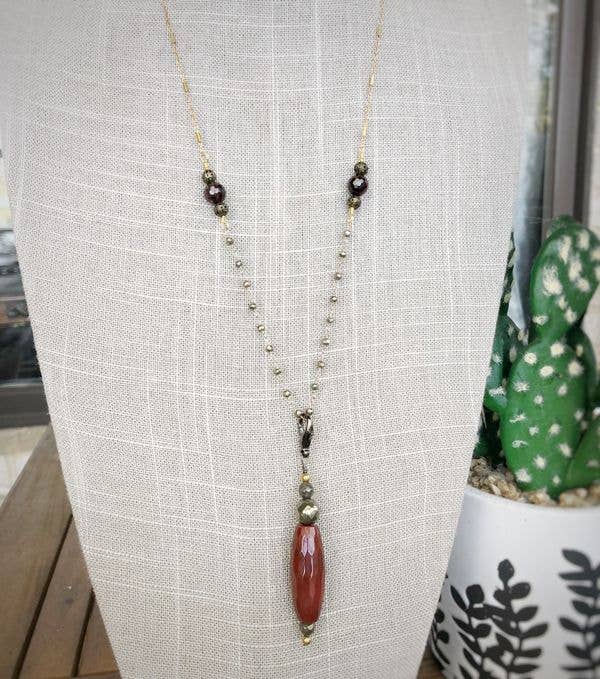Una bella collana 2 in uno intercambiabile. Da indossare come una semplice collana esagonale lunga in ottone ossidato o attaccare la pirite sfaccettata e la barra martellata ornamento per uno stile di collana completamente diverso.