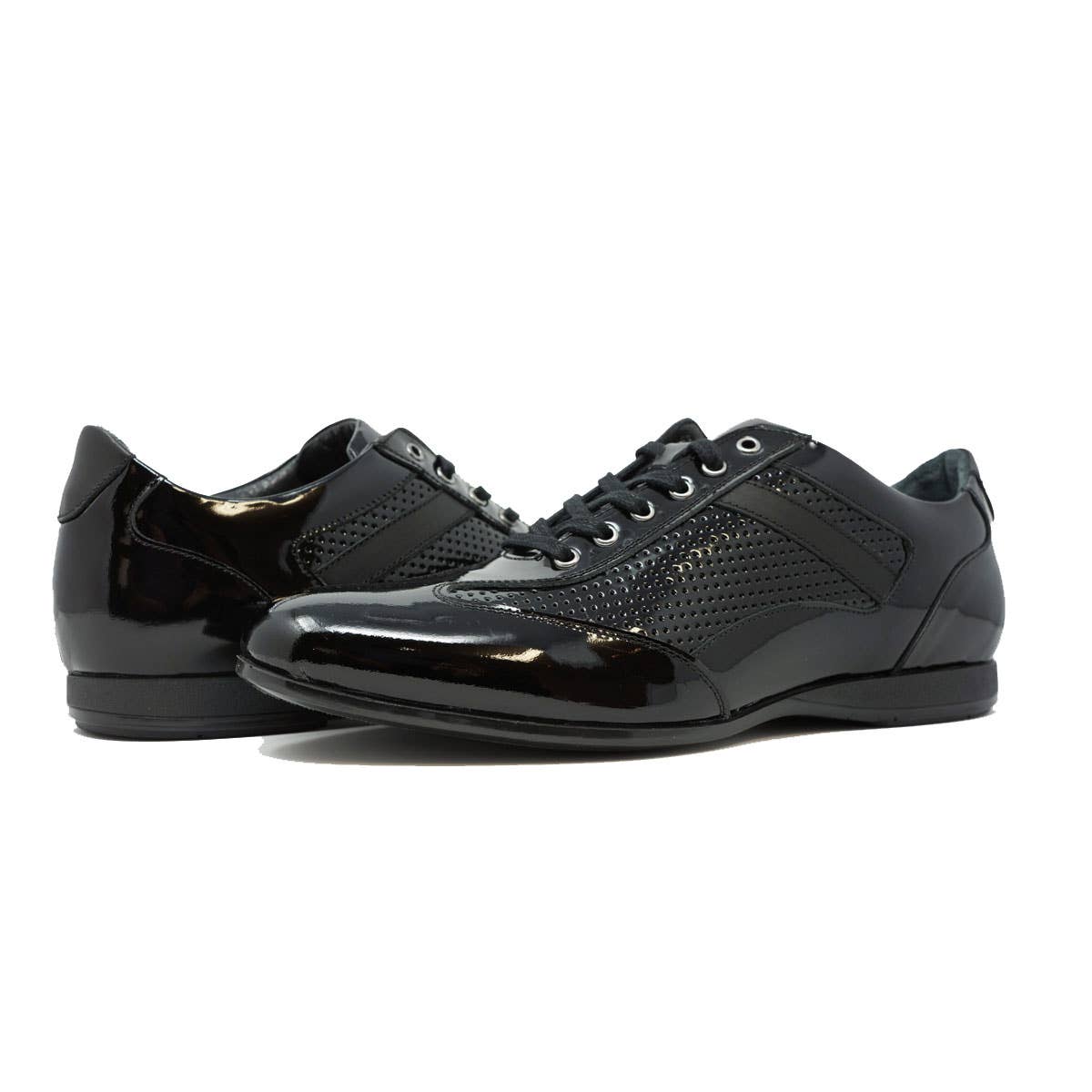 Scarpe da uomo 100% pelle 65098. Poseidon - Vernice nera all'ingrosso