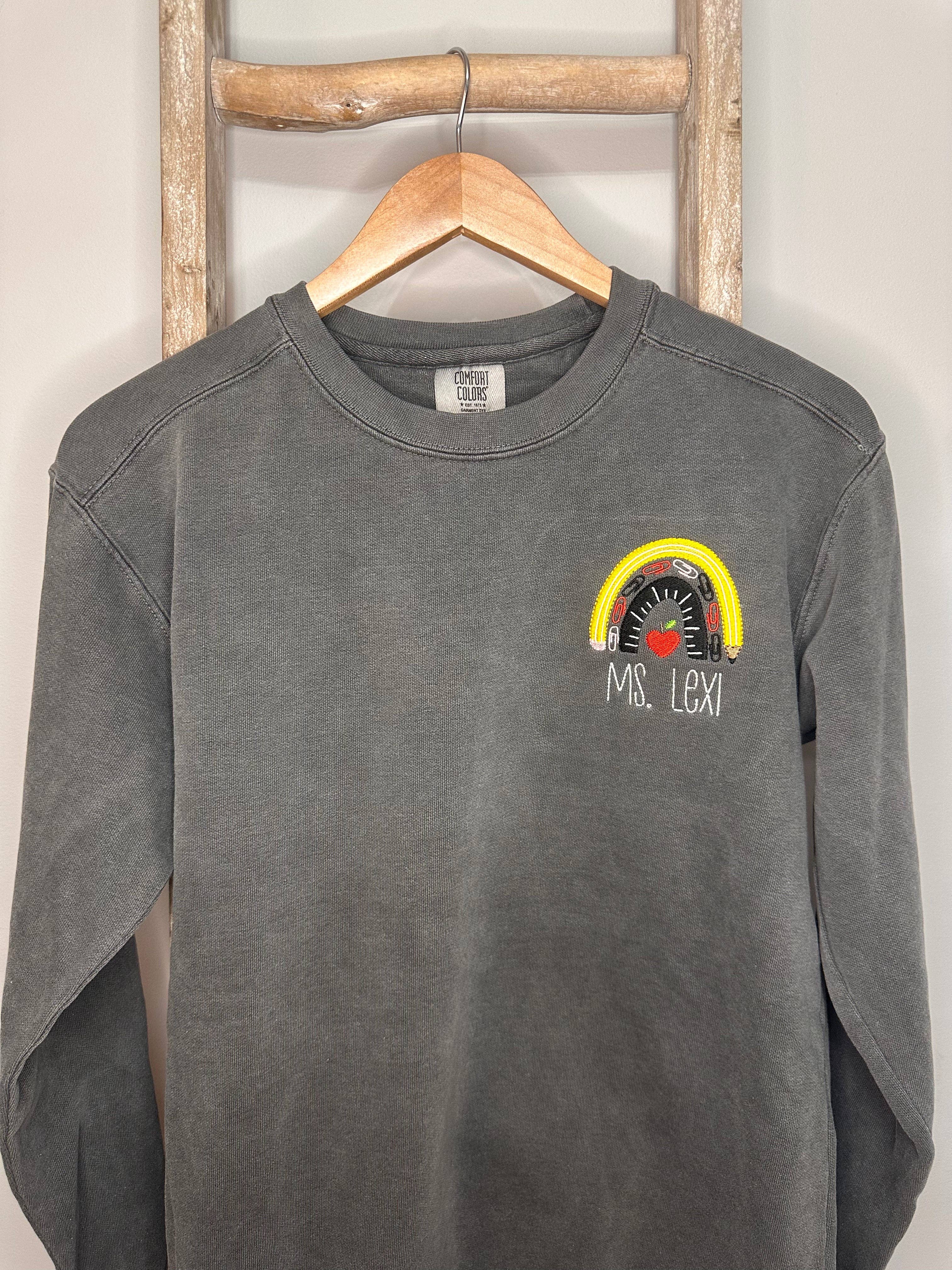 Girocollo con ricamo Teacher Rainbow /Teacher Apprezzation /Pullover da insegnante /Teacher Apple /Felpa da insegnante personalizzata all'ingrosso